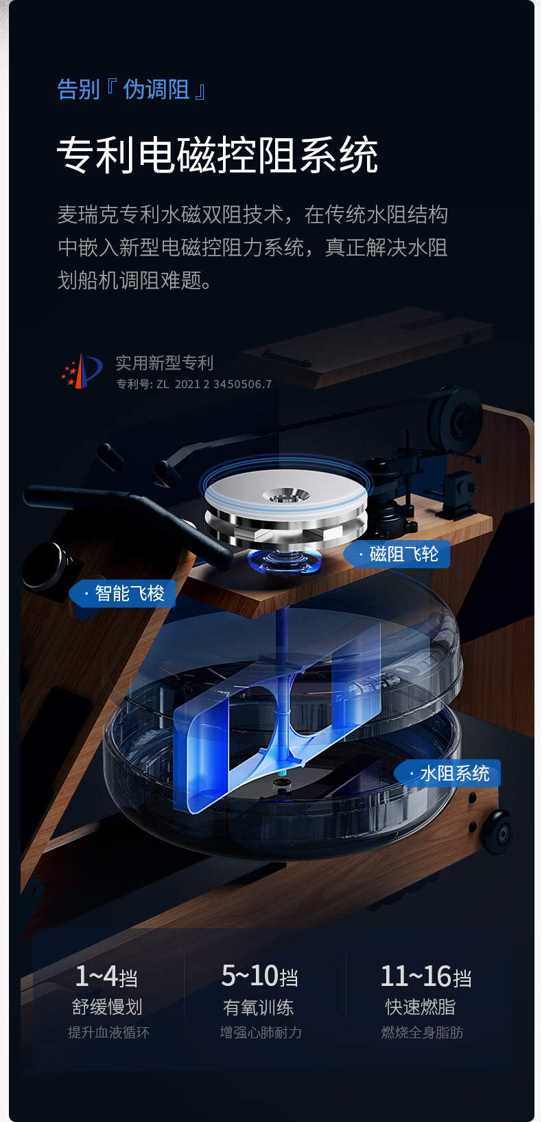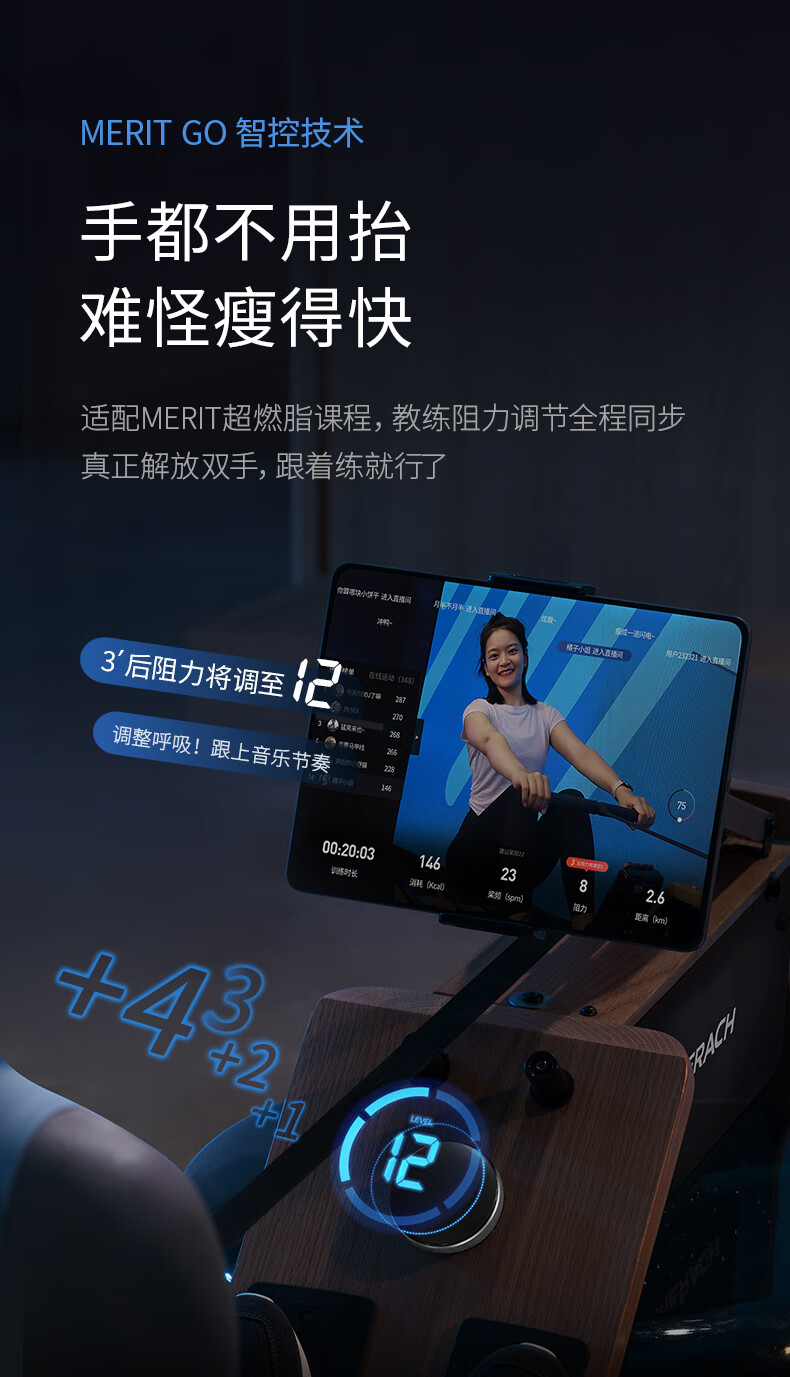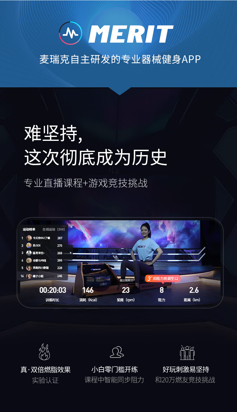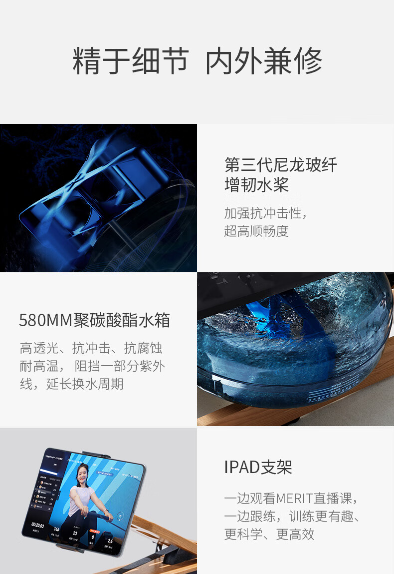 Merrick Super Fat Burning Hydromagnetic Dual Resistance Rowing Machine Home Gym Indoor Fitness Equipment Intelligent Rowing Machine Cherry Wood (Folding Model) | Hydromagnetic Dual Resistance | Exclusive Class