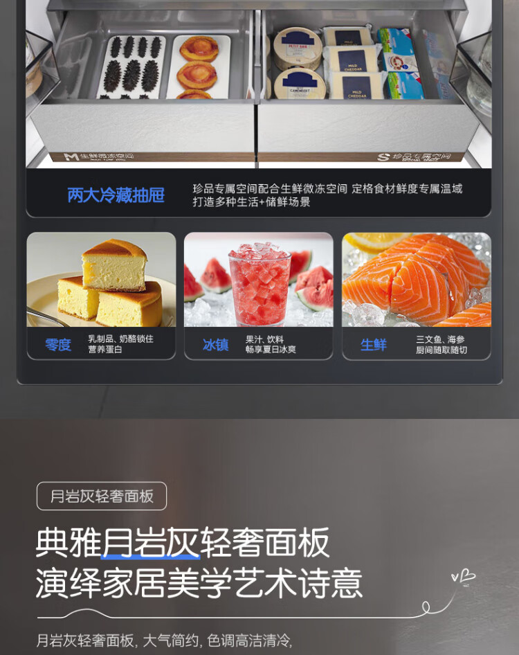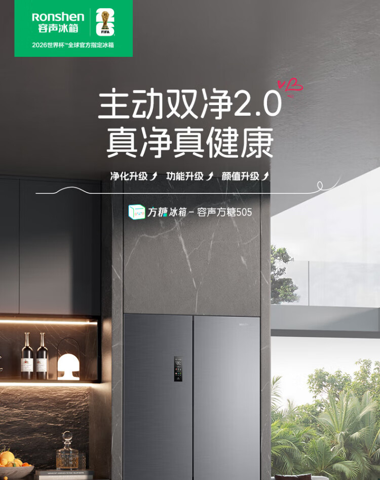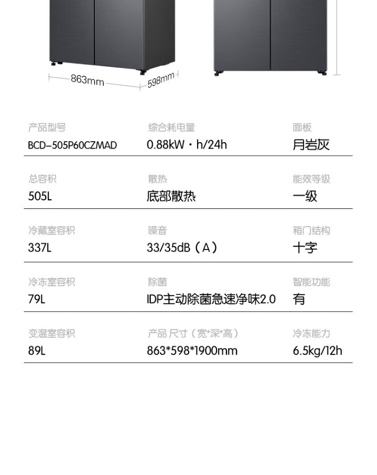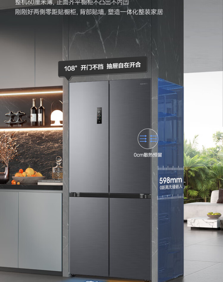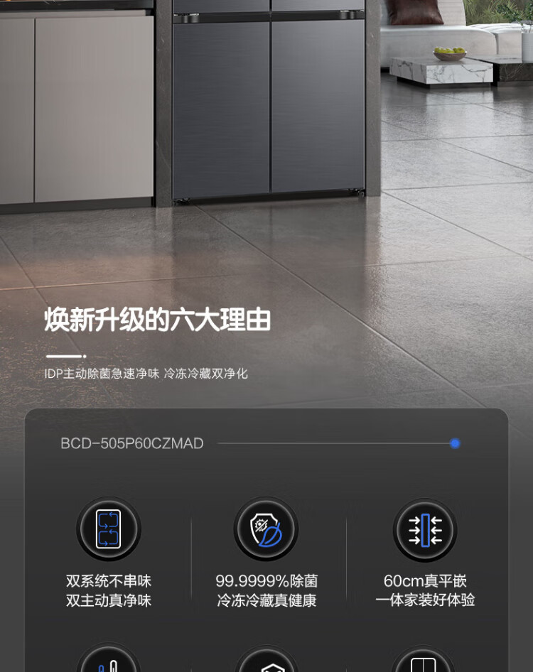 Rongsheng Tangtang 505L cross-door refrigerator dual-system cycle active sterilization ultra-thin embedded first-level energy efficiency frost-free gray BCD-505P60CZMAD national subsidy World Cup BCD-505P60CZMAD gray national subsidy