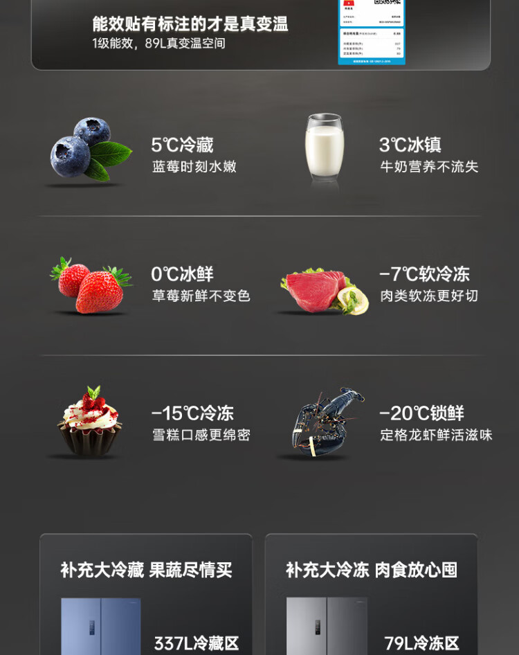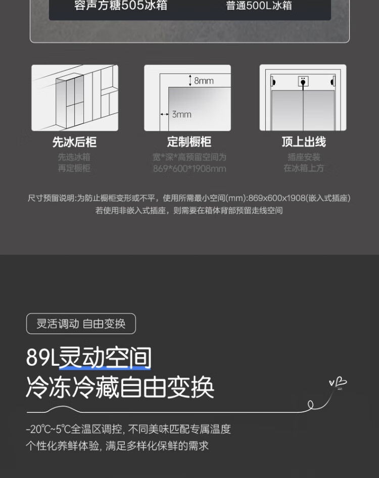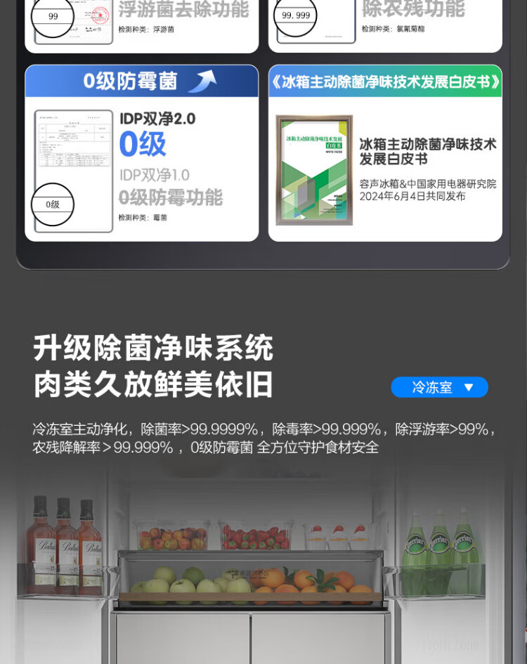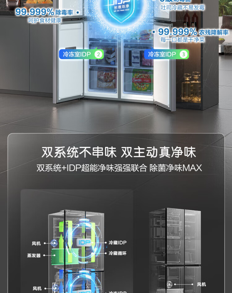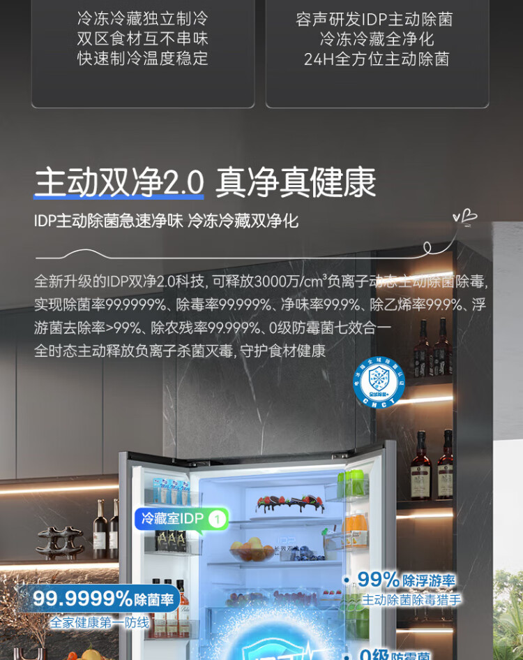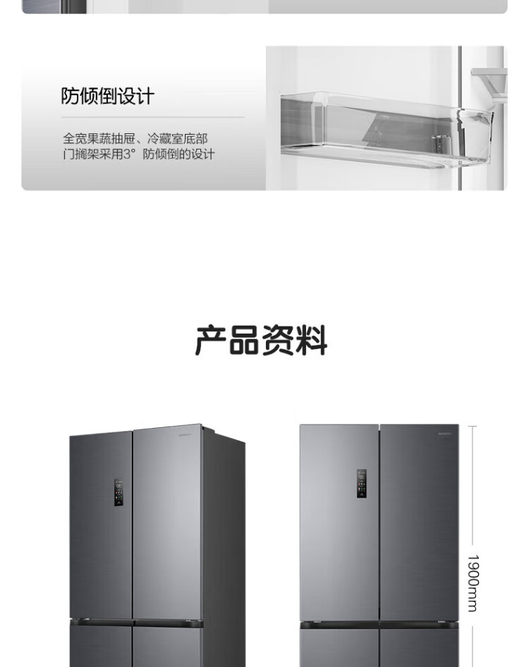 Rongsheng Tangtang 505L cross-door refrigerator dual-system cycle active sterilization ultra-thin embedded first-level energy efficiency frost-free gray BCD-505P60CZMAD national subsidy World Cup BCD-505P60CZMAD gray national subsidy