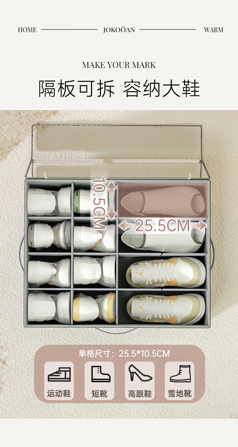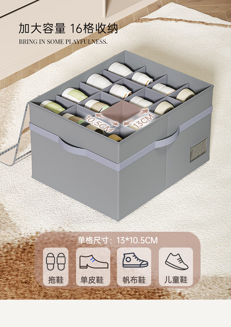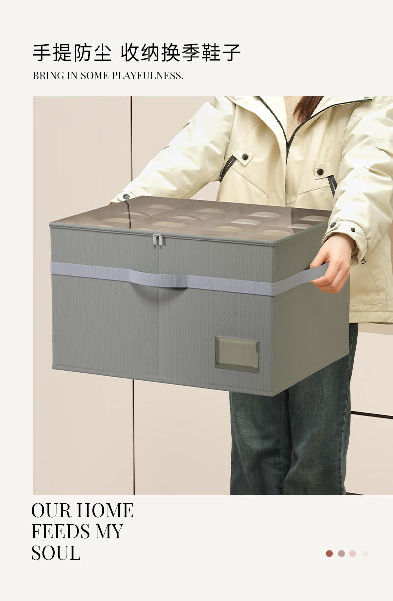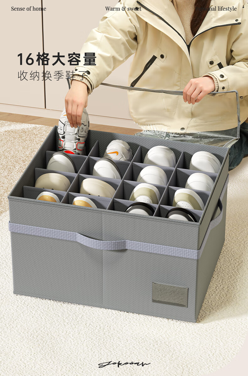 JOKOOAN Shoe Storage Artifact Home Large Capacity Foldable Fabric Shoe Box Transparent Sports Shoe Leather Shoe Dustproof Organizing Box Gray 53*42*33cm