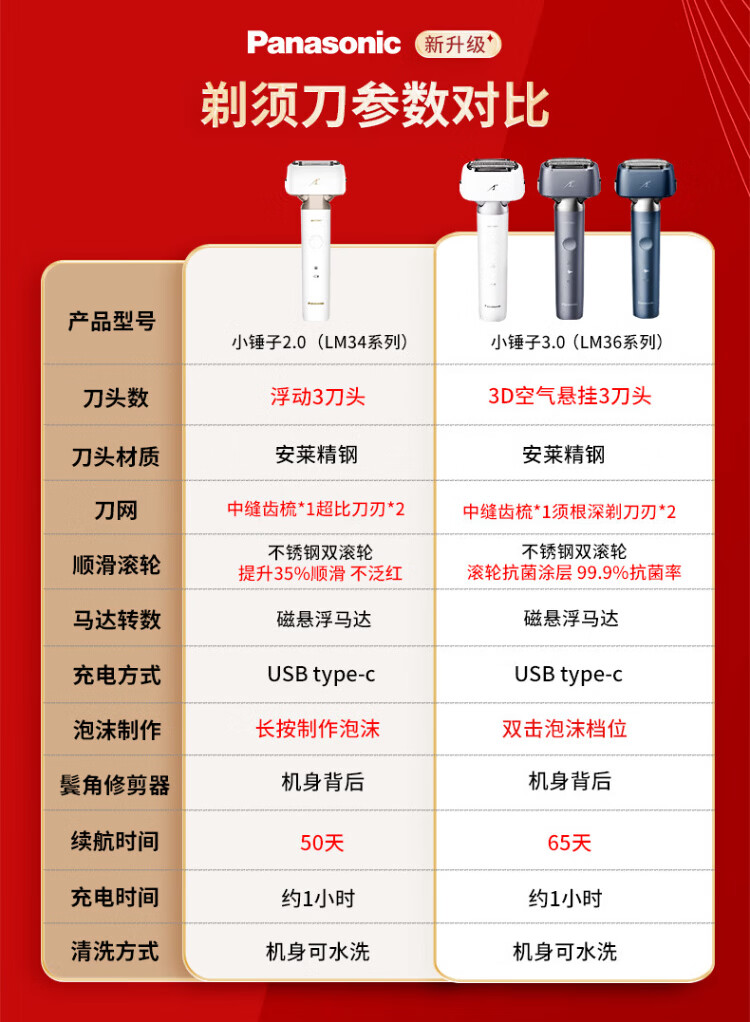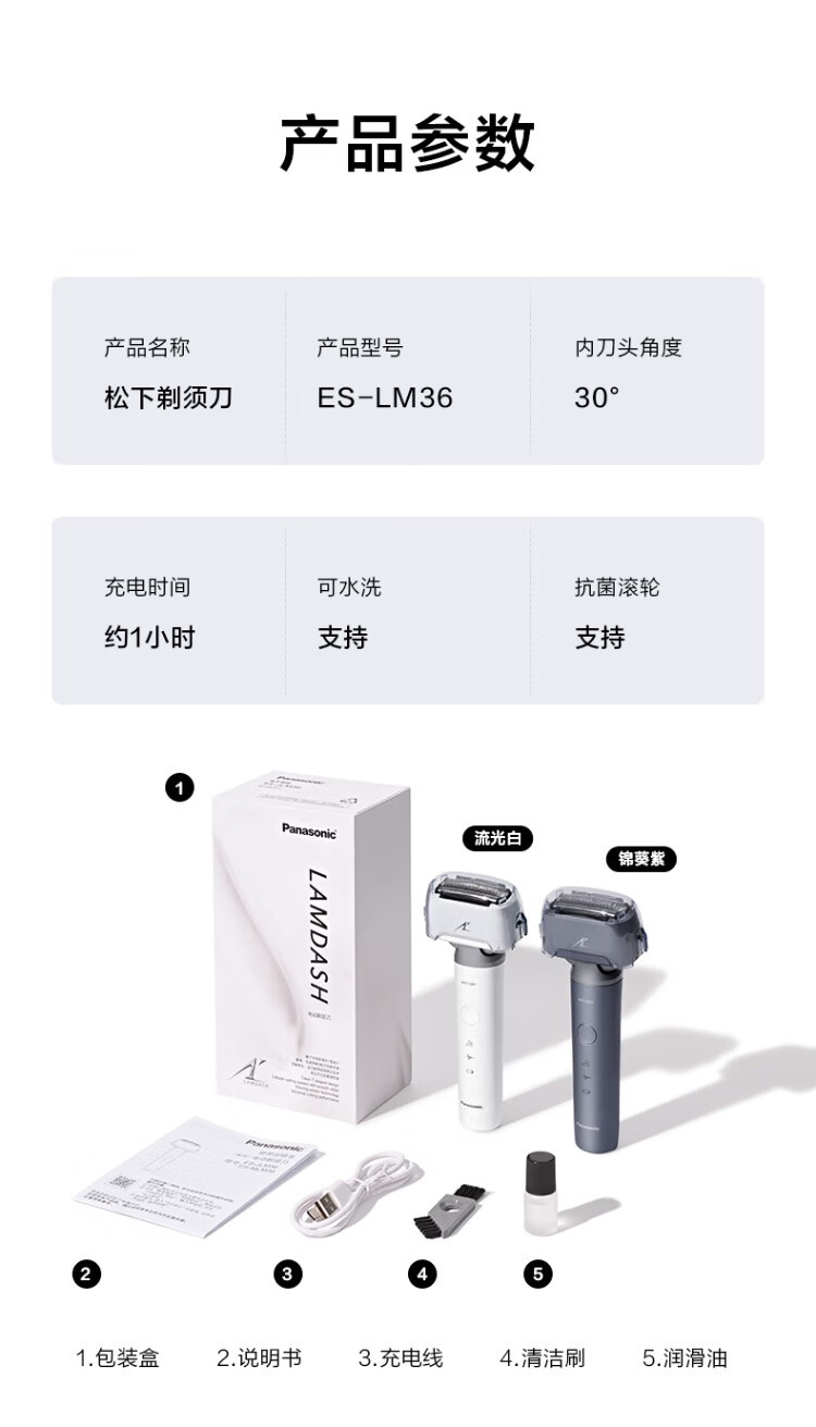 Panasonic Small Hammer 3.0 electric shaver, reciprocating smart portable beard razor, washable for men's birthday, New Year's Day, New Year's Day gift, high-end LM36 antibacterial upgraded Small Hammer 3.0丨Mallow Purple LM36