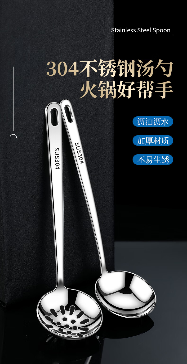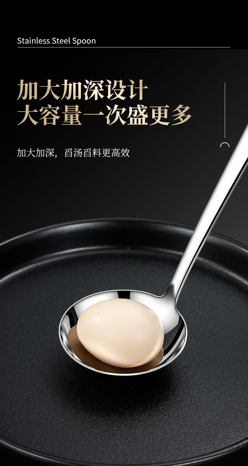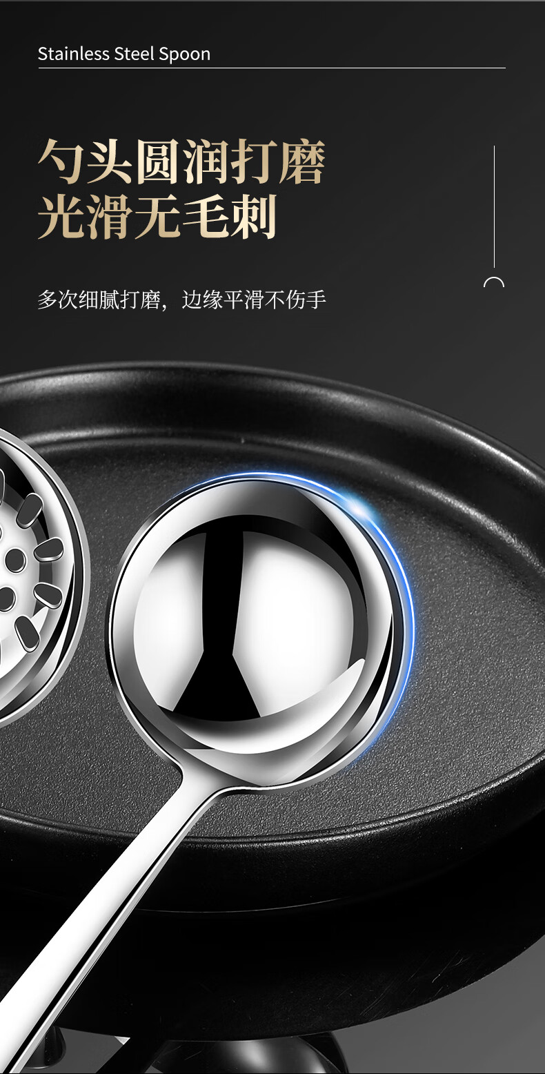 Fat Donglai's same 316 stainless steel soup spoon 316 food-grade stainless steel household long-handled soup spoon fire thickened 316 steel soup spoon + hook