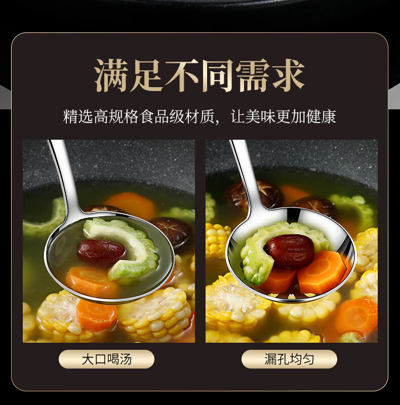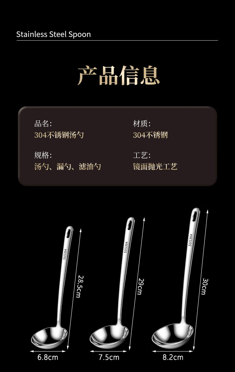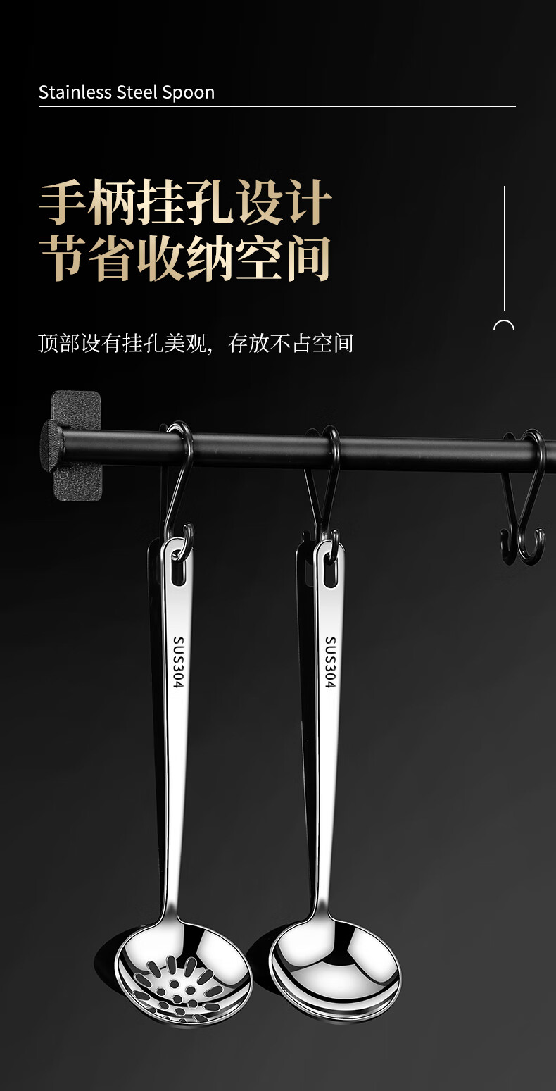 Fat Donglai's same 316 stainless steel soup spoon 316 food-grade stainless steel household long-handled soup spoon fire thickened 316 steel soup spoon + hook