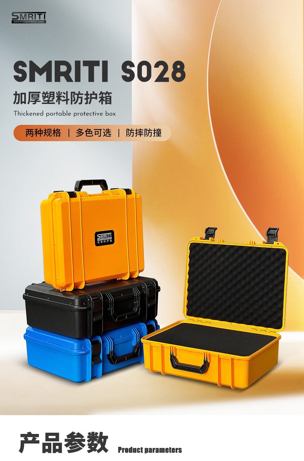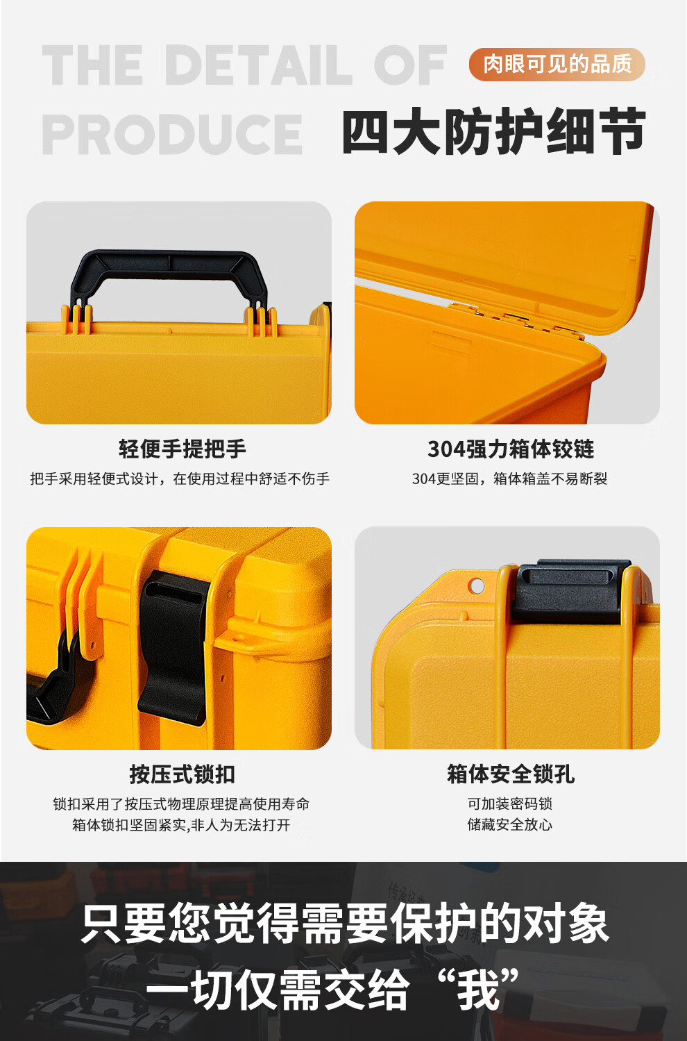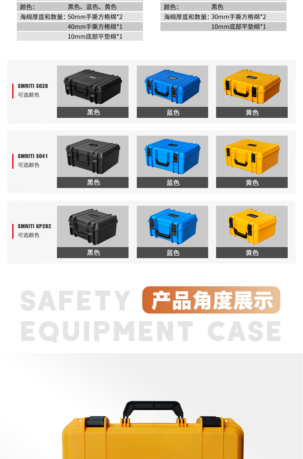 SMRITI heritage protective box S028 series thickened PP customizable lining portable instrument box hardware tool box moisture-proof box S028L yellow with sponge