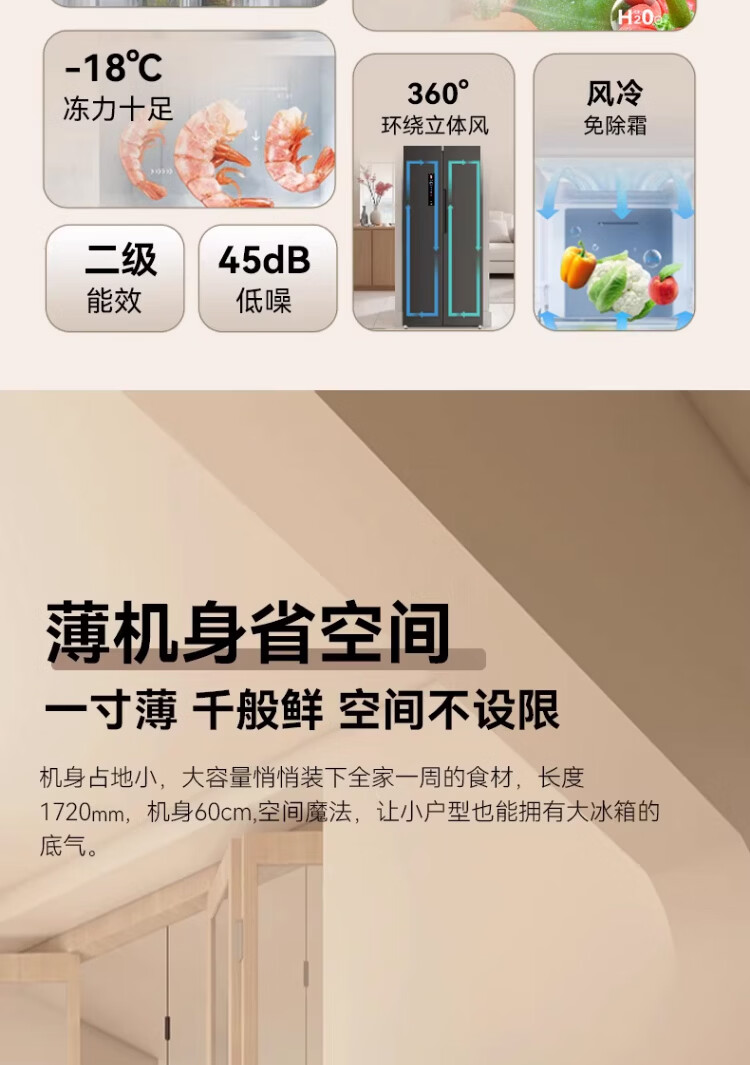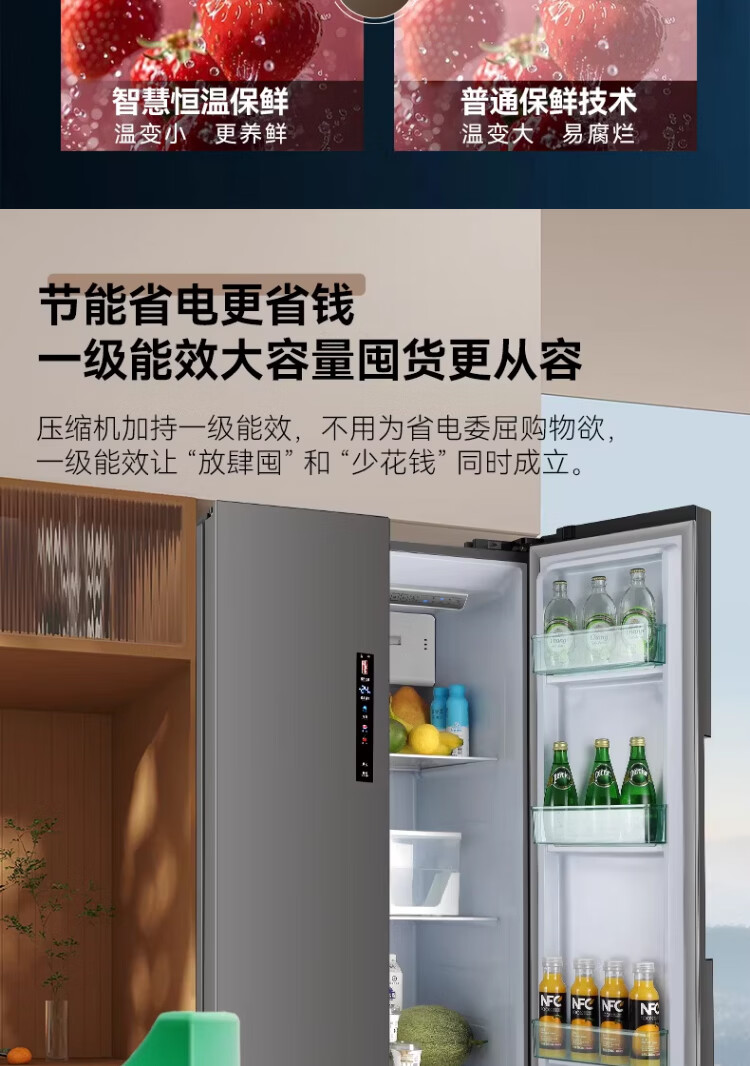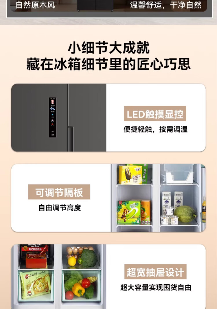 Oaks side-by-side refrigerator air-cooled frost-free cross four-door household large-capacity energy-saving built-in refrigerator Level 1 energy efficiency-426 upgraded model I side-by-side double door 348L