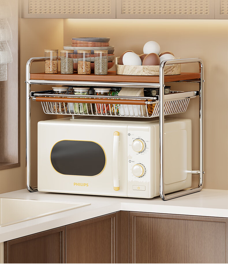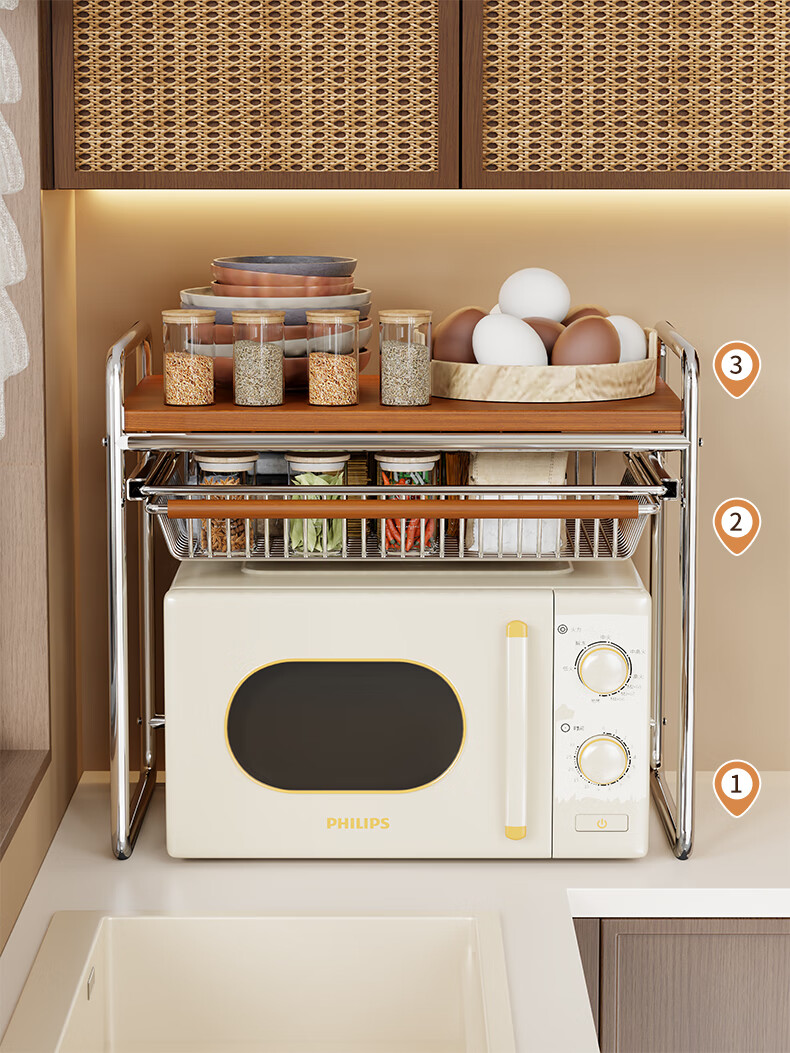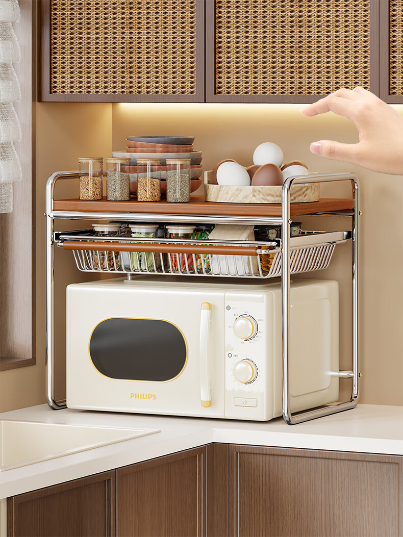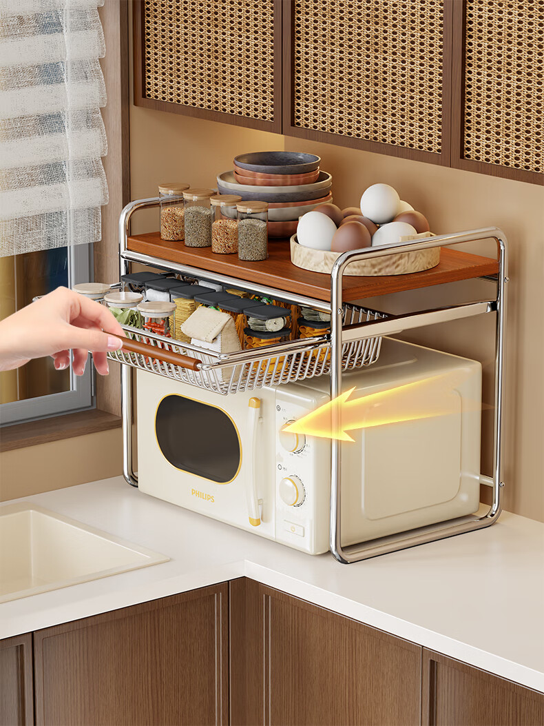 Fan Lilin kitchen microwave shelf storage rack multi-layer multi-layer household oven countertop rice cooker storage rack medieval style pull-out style - upgraded with pull-out basket