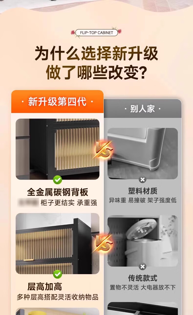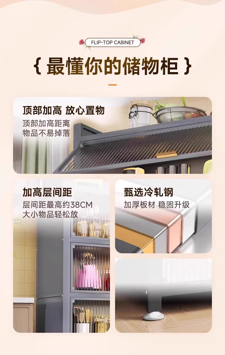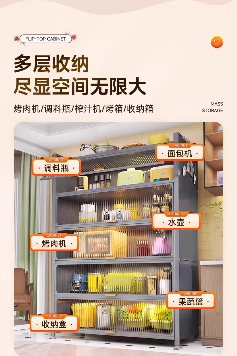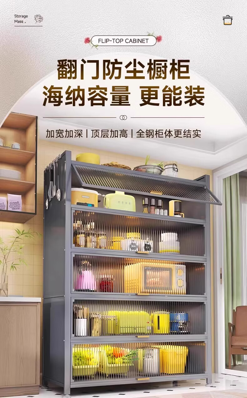 ONNAIS kitchen rack floor-standing multi-layer dust-proof storage cabinet household microwave oven storage cabinet cupboard sideboard four layers thickened length 120 width 35 height 112cm