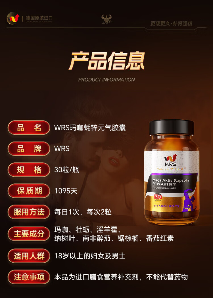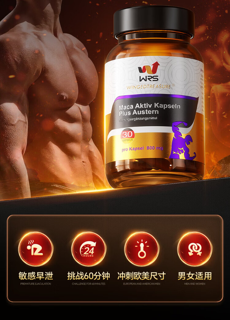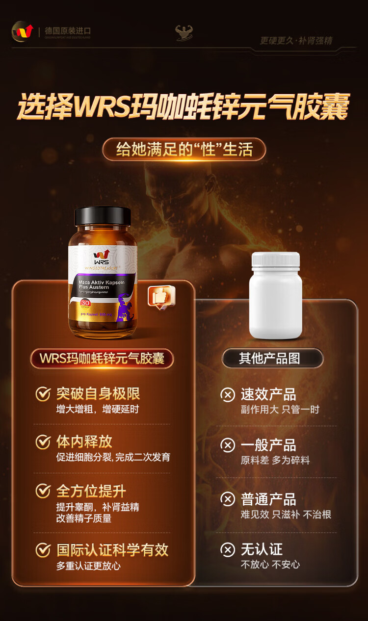 WRS Maca Oyster Zinc Vitality Capsule Men's Health Testosterone Aphrodisiac Delay Long-lasting Impotence Premature Ejaculation Imported from Germany 6 Bottles Consolidation Pack Long-lasting Escort