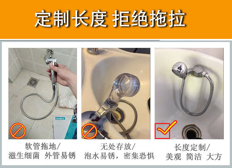 FANCYCHIC barber shop shampoo hose shampoo bed accessories universal shower hose beauty salon short durable bath shower double-head copper thickened universal interface 70 cm