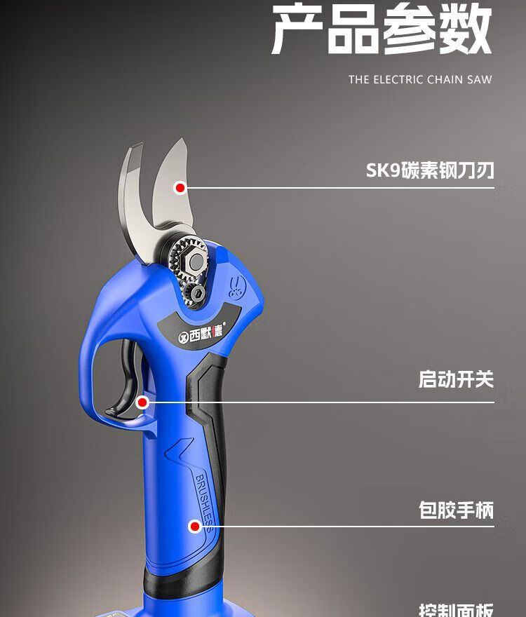 Siemer German brushless electric scissors for cutting branches, electric scissors for pruning, garden fruit trees, peppercorns, thick branches, first choice for big gardeners, 10-cell dual battery, long battery life