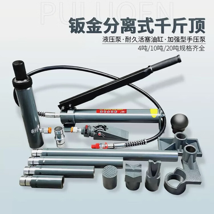 LISM4T 10 tons automotive sheet metal repair separated hydraulic jack car dent shaping tool post jack 10 tons reinforced chrome plating 16-piece set in plastic box