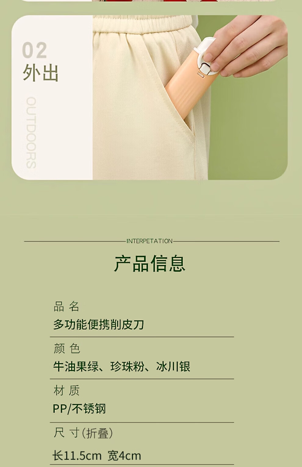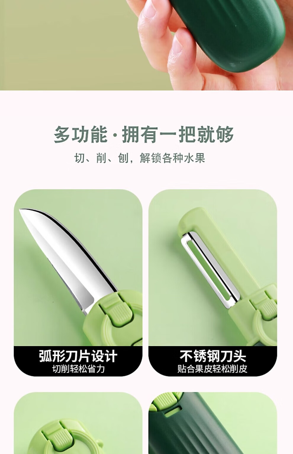 Rihe Shengtang Fruit Knife Dormitory Student Peeling Knife Home Portable Multi-Function Two-in-One Apple Peeling Dual-Purpose Green Foldable Fruit Knife Over 60_6cm