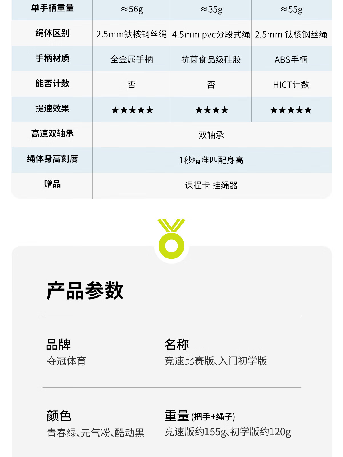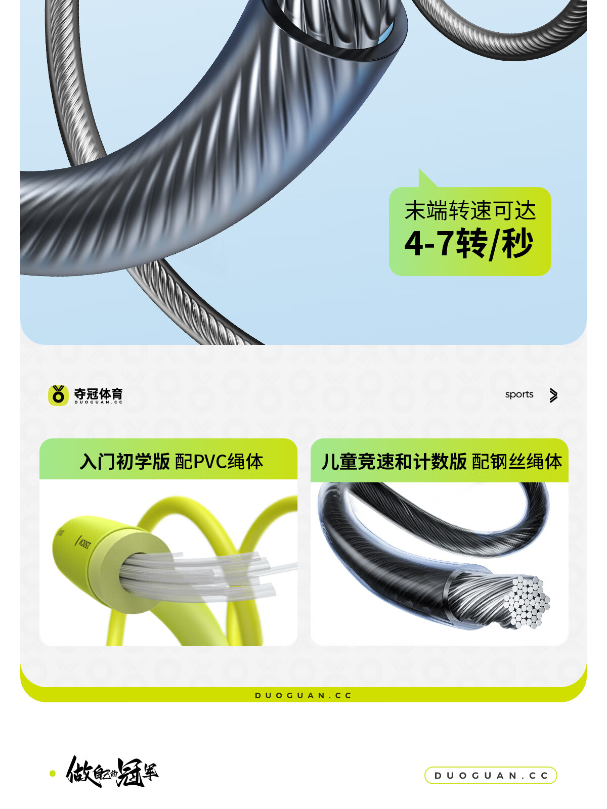 Winning children's speed skipping rope, special steel wire skipping rope for primary school students, special unknotted counting jump rope for primary school students, children's racing M code, youth green
