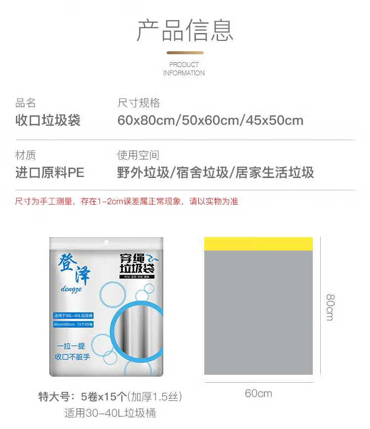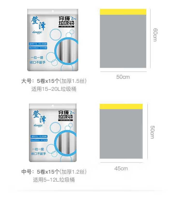 Customized Denze automatic closing sorting garbage bag extra large trash can kitchen drawstring plastic bag extra large ten rolls suitable for 30-40 liters total 150 pieces thickened