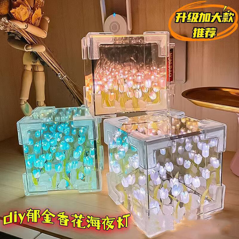 Tulip handmade diy night light, Tulip Rubik's Cube night light, Chinese Valentine's Day gift for girlfriends, homemade material package for couples, pink tulip night light (30 flowers)