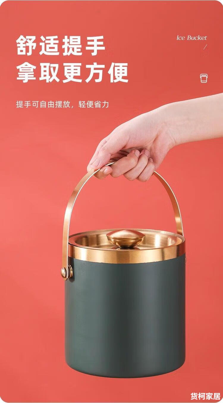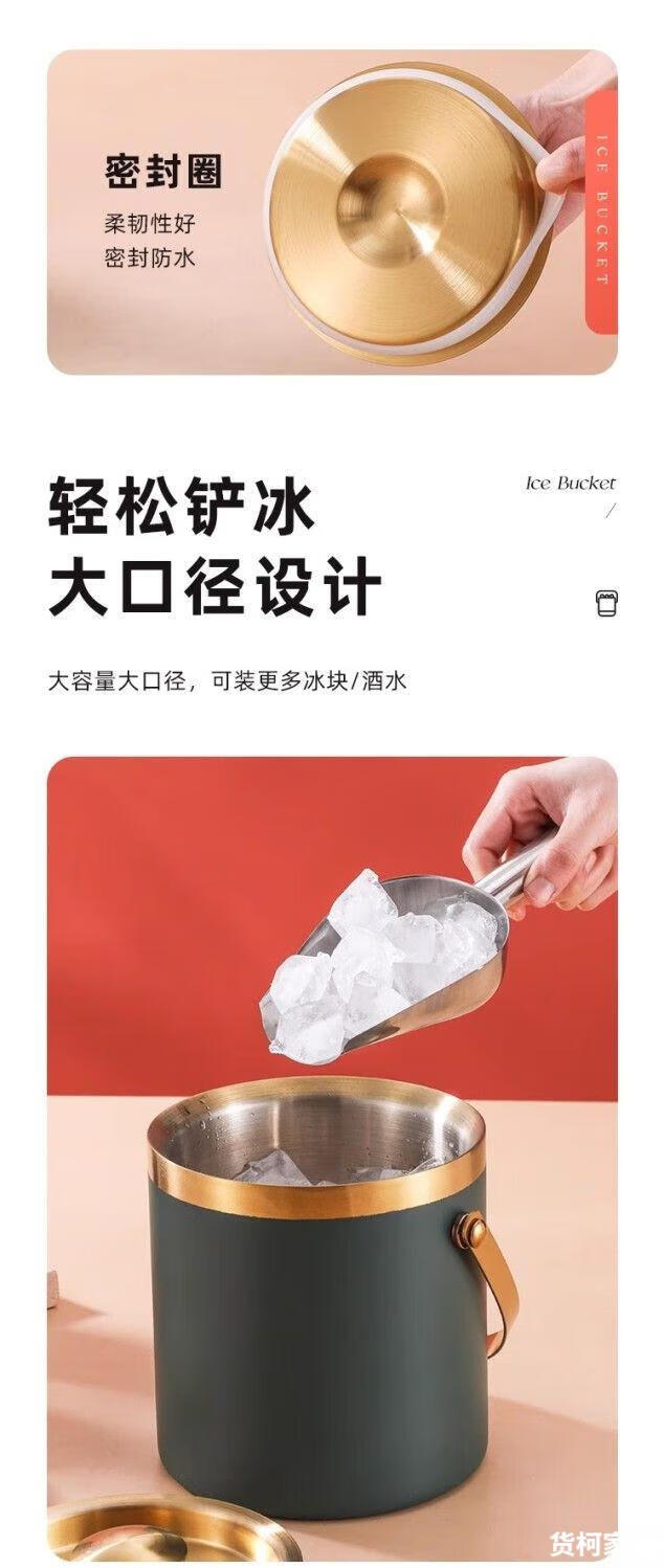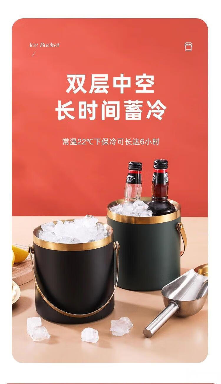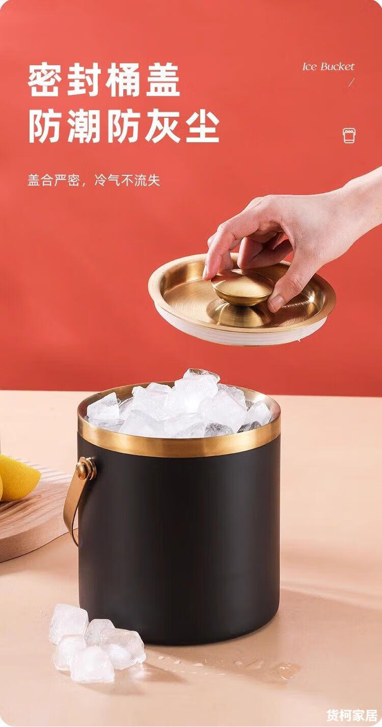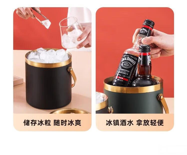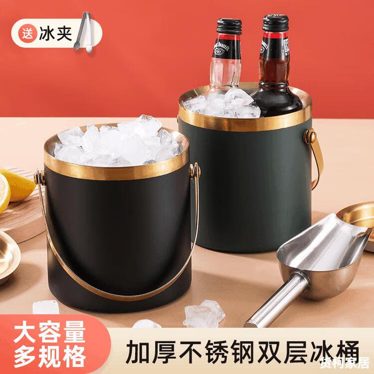 Raft core ice bucket ice cube bucket stainless steel double-layer thermal insulation and cold insulation high-value KTV champagne red wine beer ice cube commercial imported double-layer rhombus + wooden cover 2L (free ice clip)