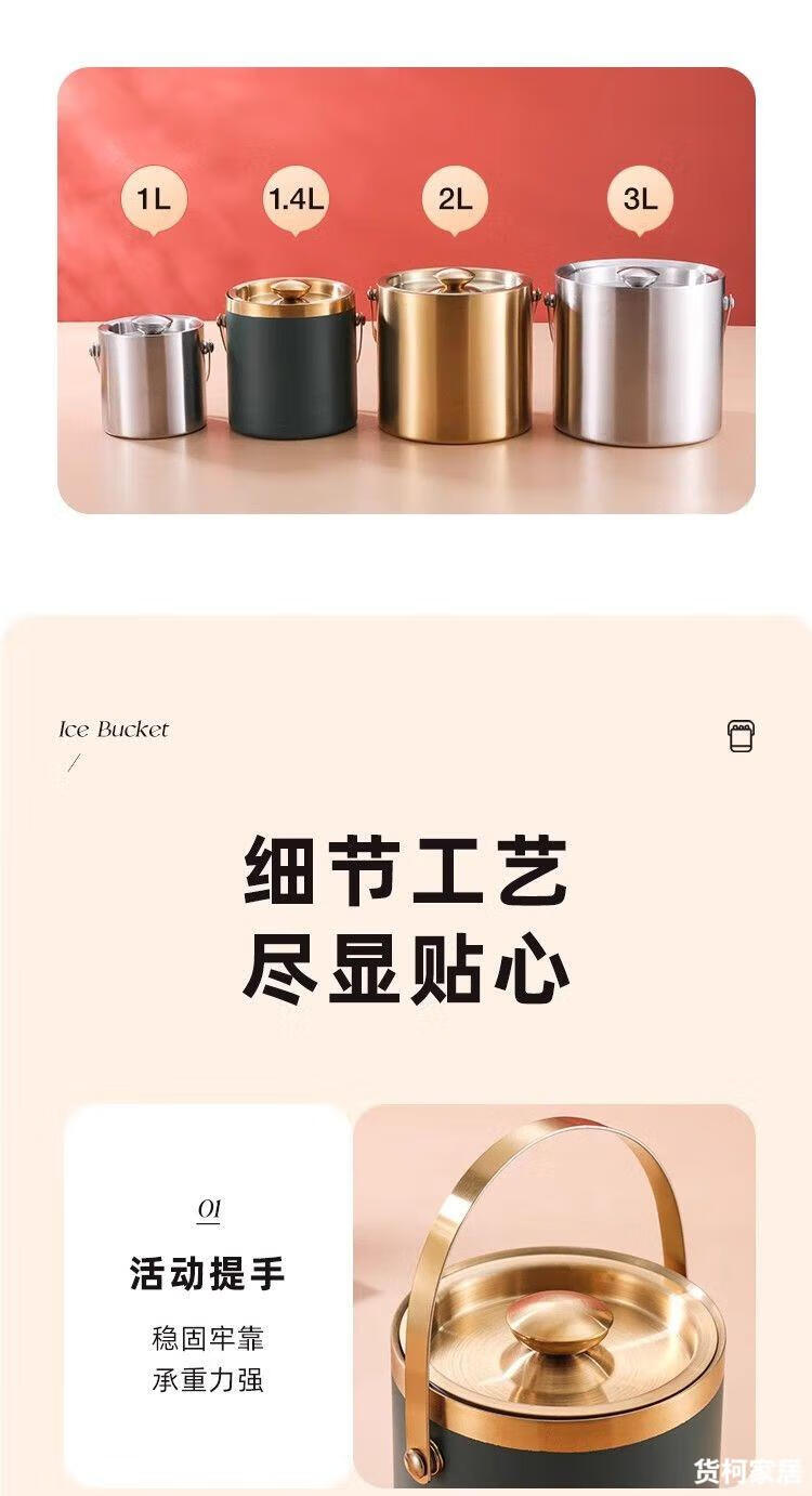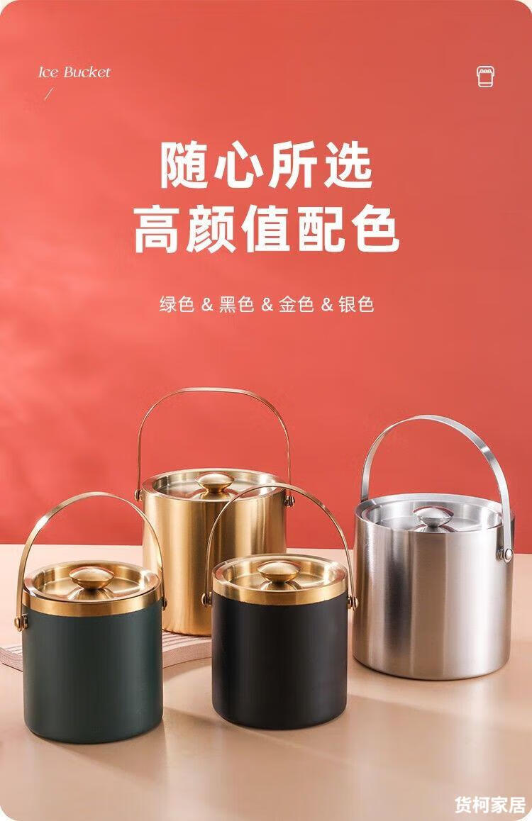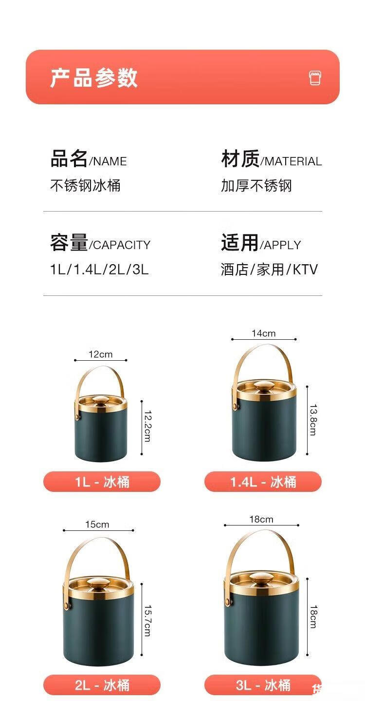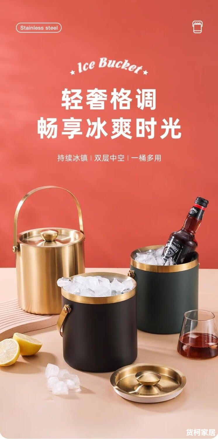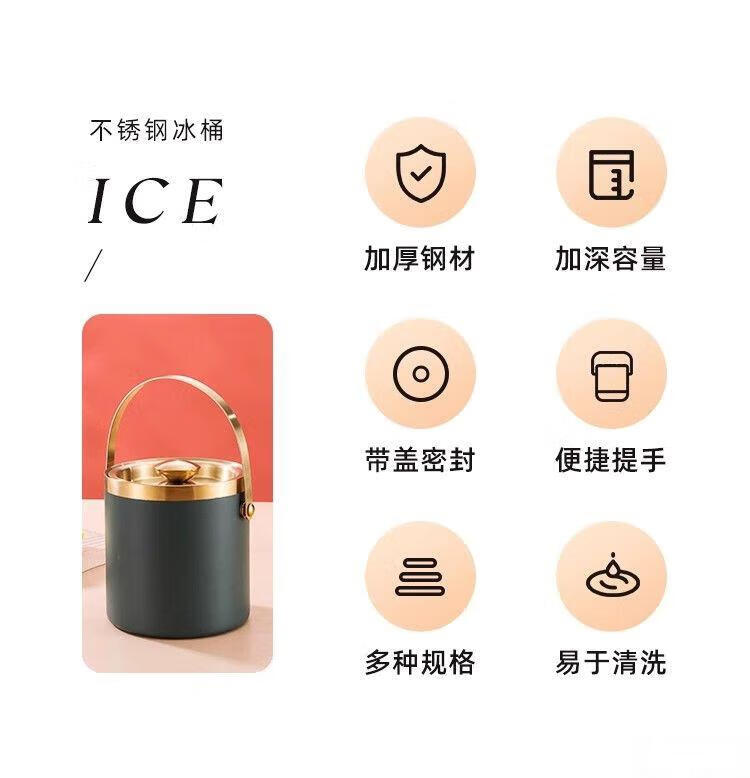 Raft core ice bucket ice cube bucket stainless steel double-layer thermal insulation and cold insulation high-value KTV champagne red wine beer ice cube commercial imported double-layer rhombus + wooden cover 2L (free ice clip)