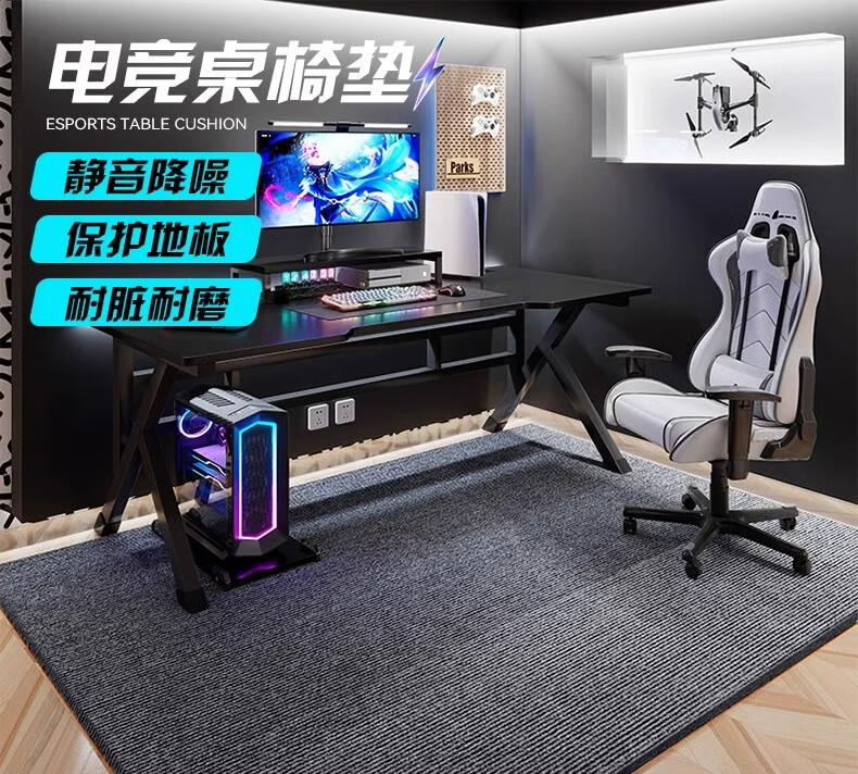 E-sports table and chair carpet office study chair floor mat wooden floor protection mat E-sports room bedroom soundproof mat gray TPE single stripe 6mm sound insulation and shock absorption 120*150CM