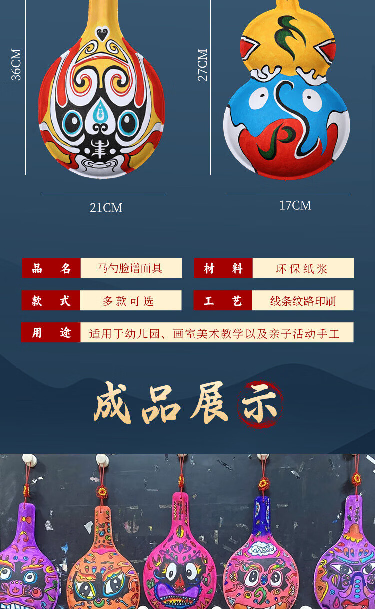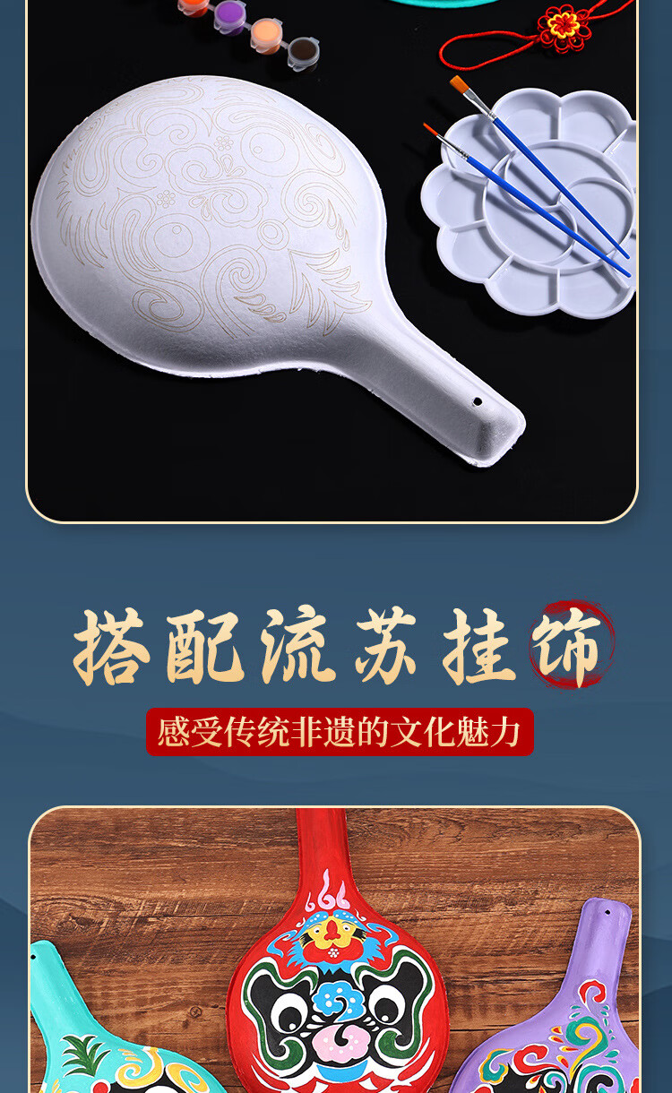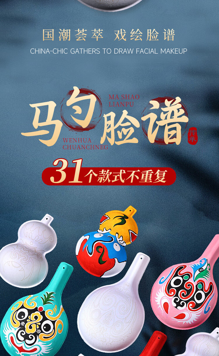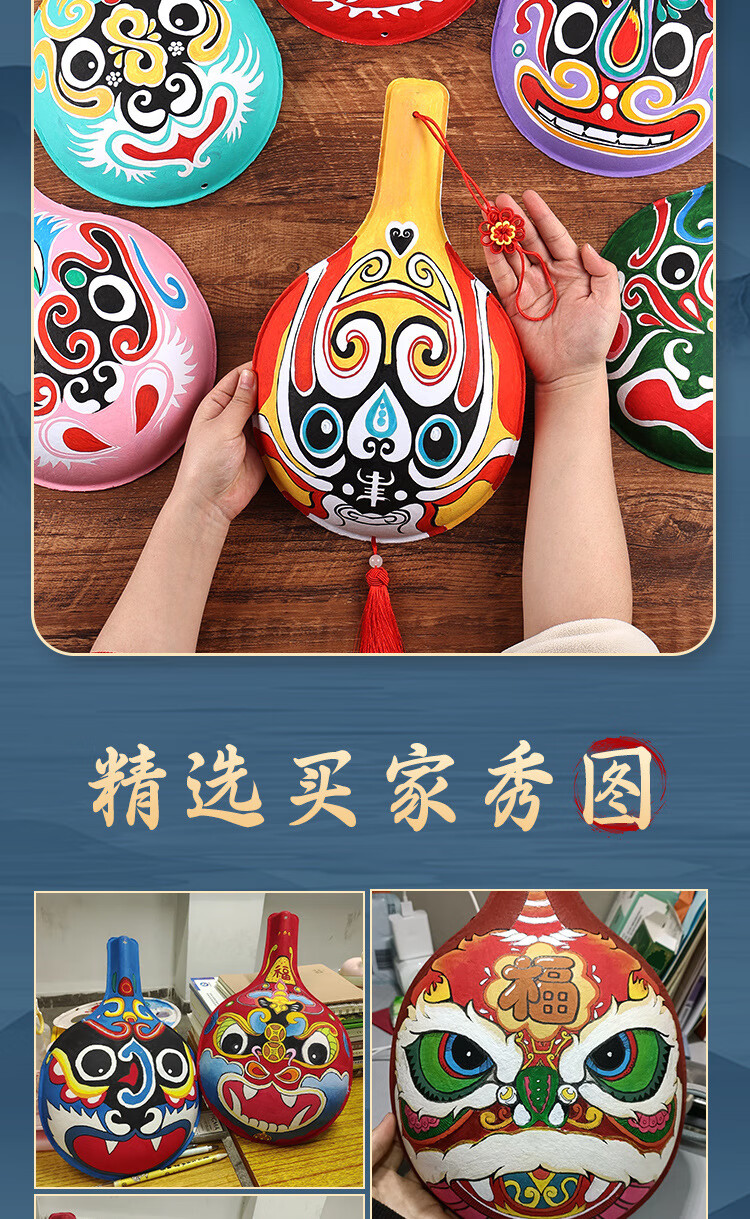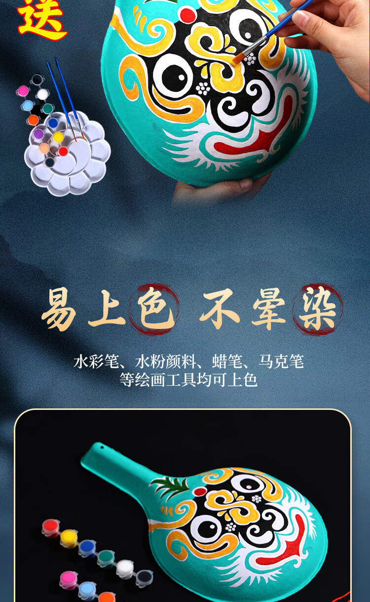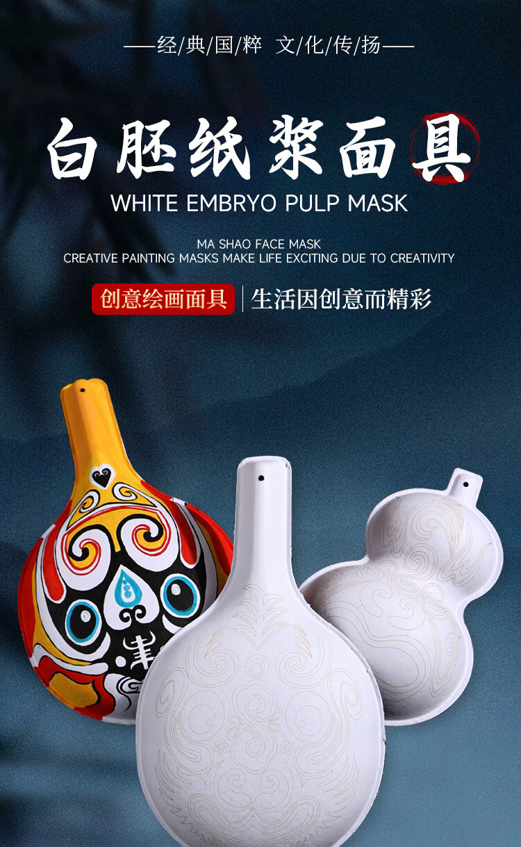 Y horse spoon gourd facial mask hand-painted diy intangible cultural heritage handmade Peking opera with texture white embryo national trend cultural and creative teaching materials large horse spoon + paint (set)