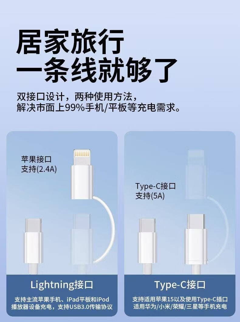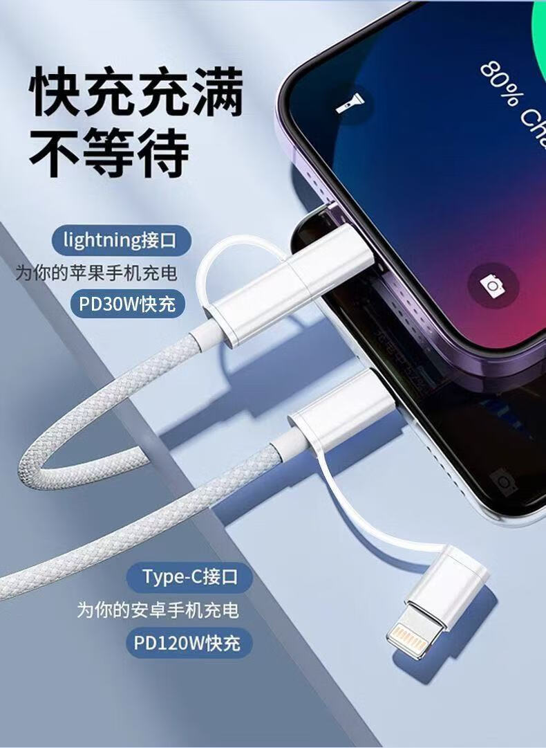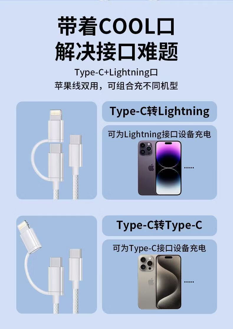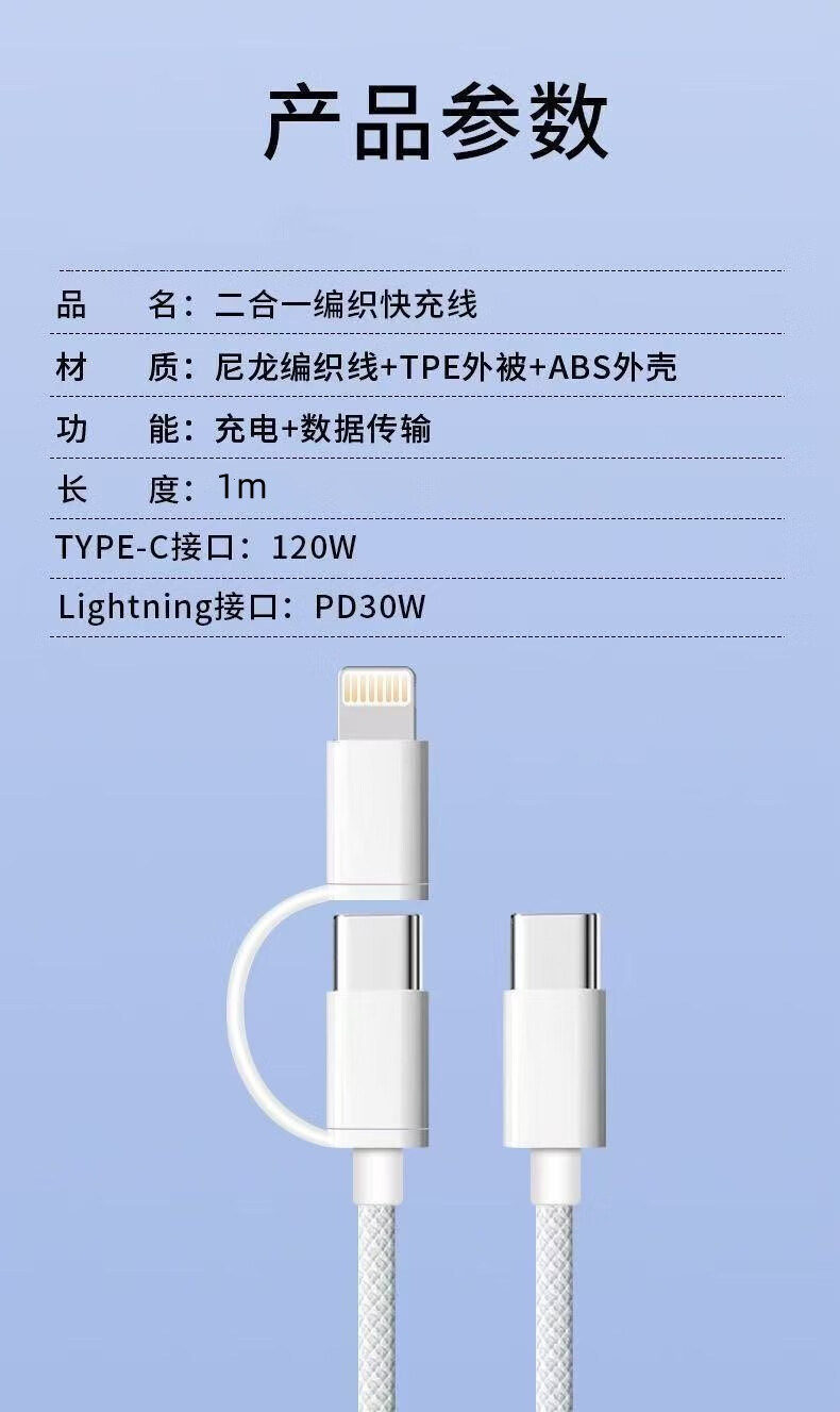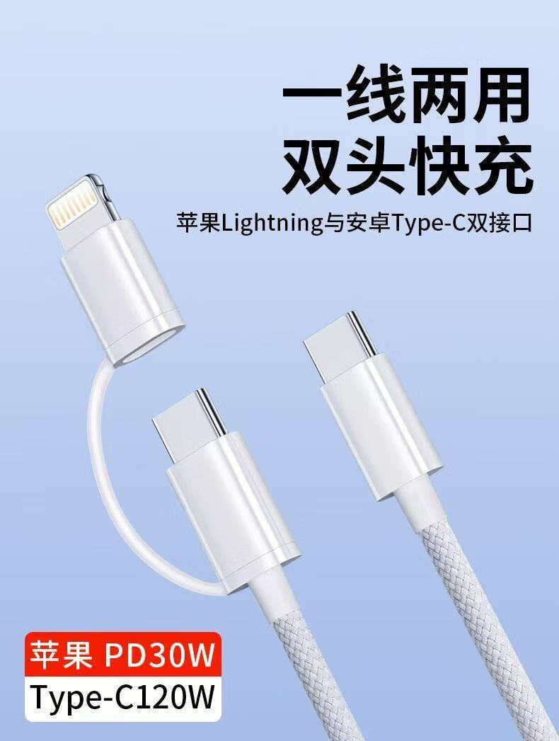 Apple 2-in-1 fast charging data cable supports the full range of Apple IPhone6-16 PD20W charger Type-c port supports fast charging 1 meter white double C port data cable