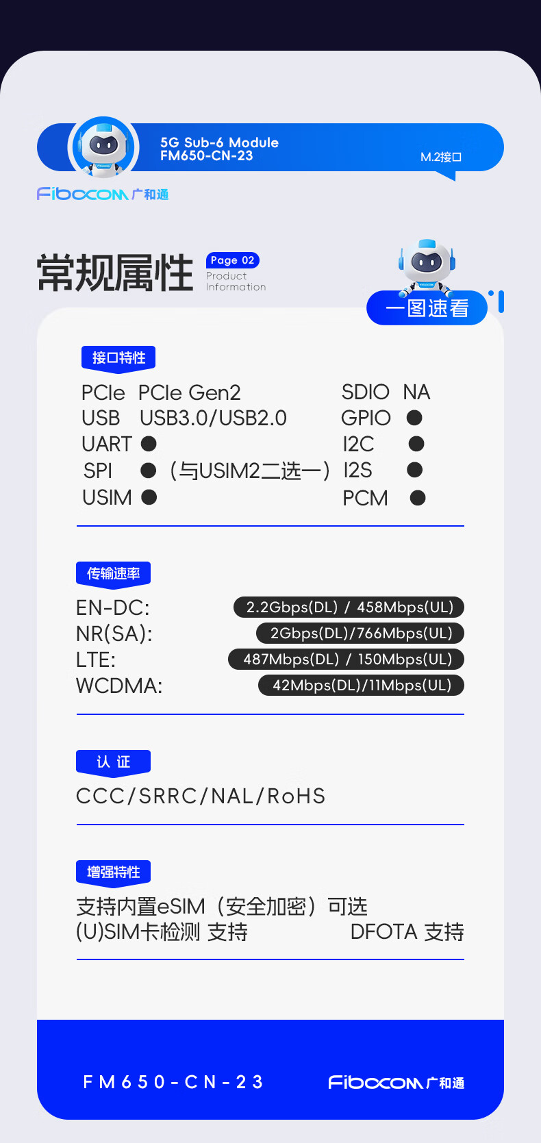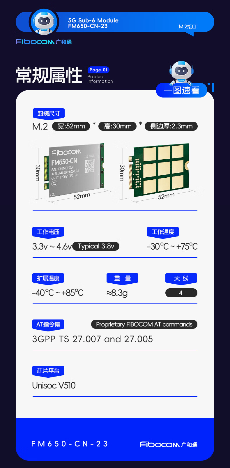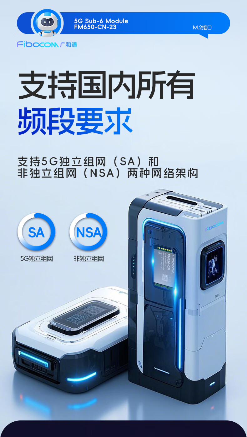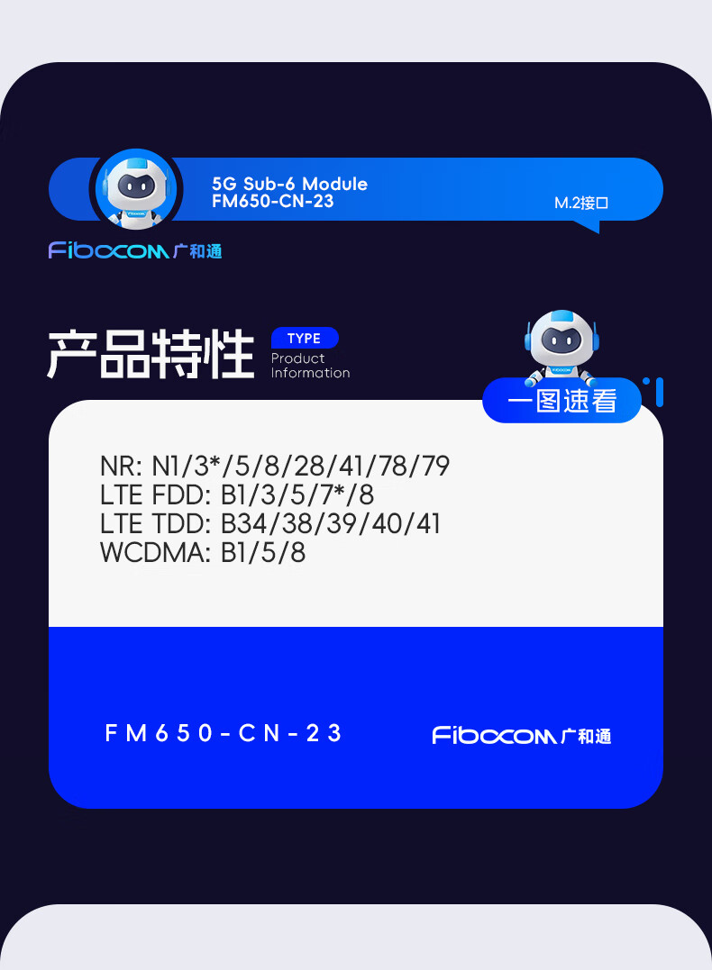 Fibocom 5G module FM650 module Sub6 Zhanrui platform M2 package Chinese version wireless communication module FM650-CN-23