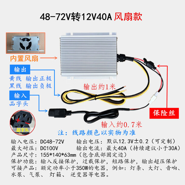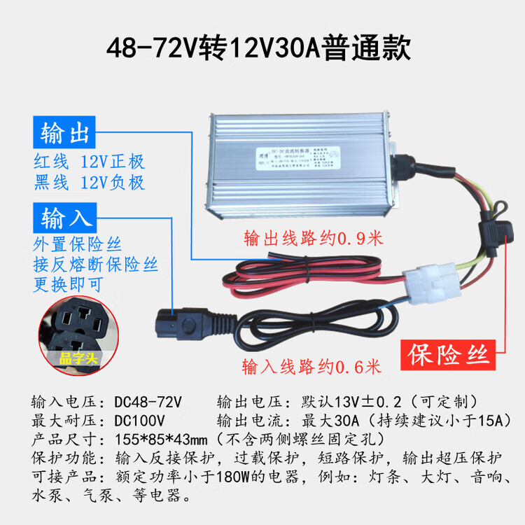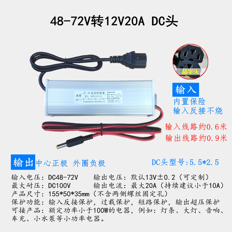 60v to 12v converter high power electric car pin head light box street stall lamp transformer 48V60V72V to 12V24V step-down converter 48-72V to 12V10A pinzi ordinary style