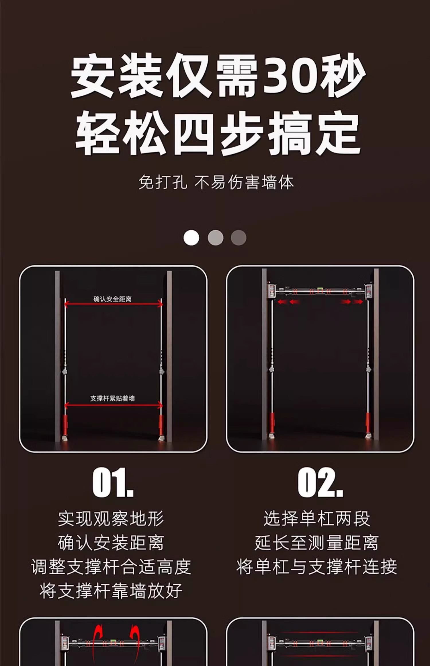 SPXINE hanging bar horizontal bar pull-up device indoor home punch-free single bar training family floor-standing hanging bar fitness frame 135-180cm wall distance installation-support upgrade
