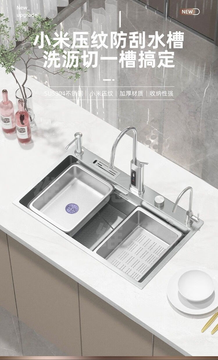 TOTO5MM embossed SUS304 stainless steel primary color large single-slot household kitchen sink multi-functional under-counter dishwashing basin knife holder 75*46 simple configuration (no faucet)
