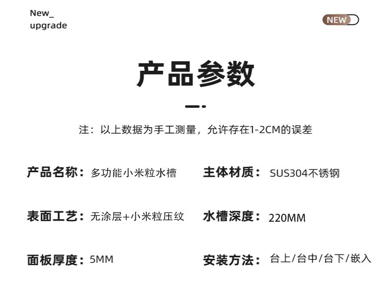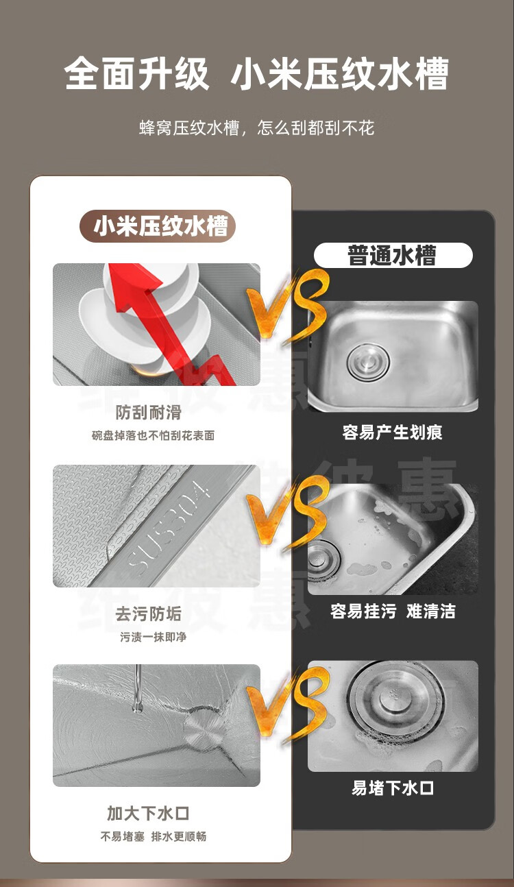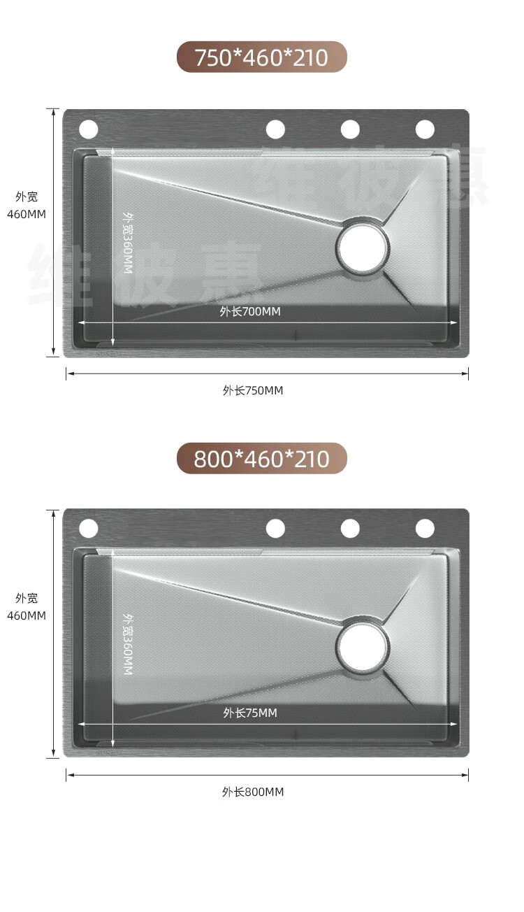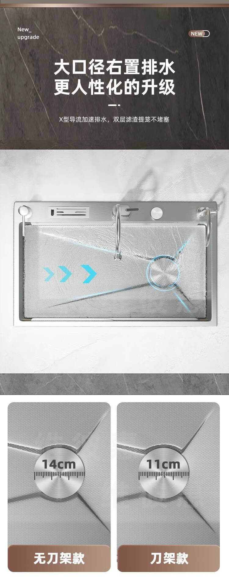 TOTO5MM embossed SUS304 stainless steel primary color large single-slot household kitchen sink multi-functional under-counter dishwashing basin 68*46 simple configuration (no faucet)