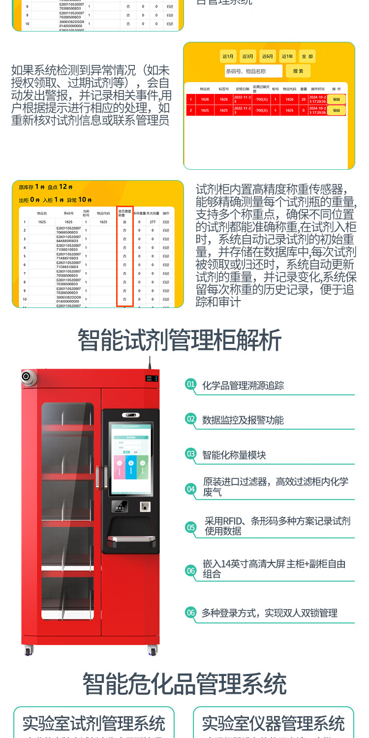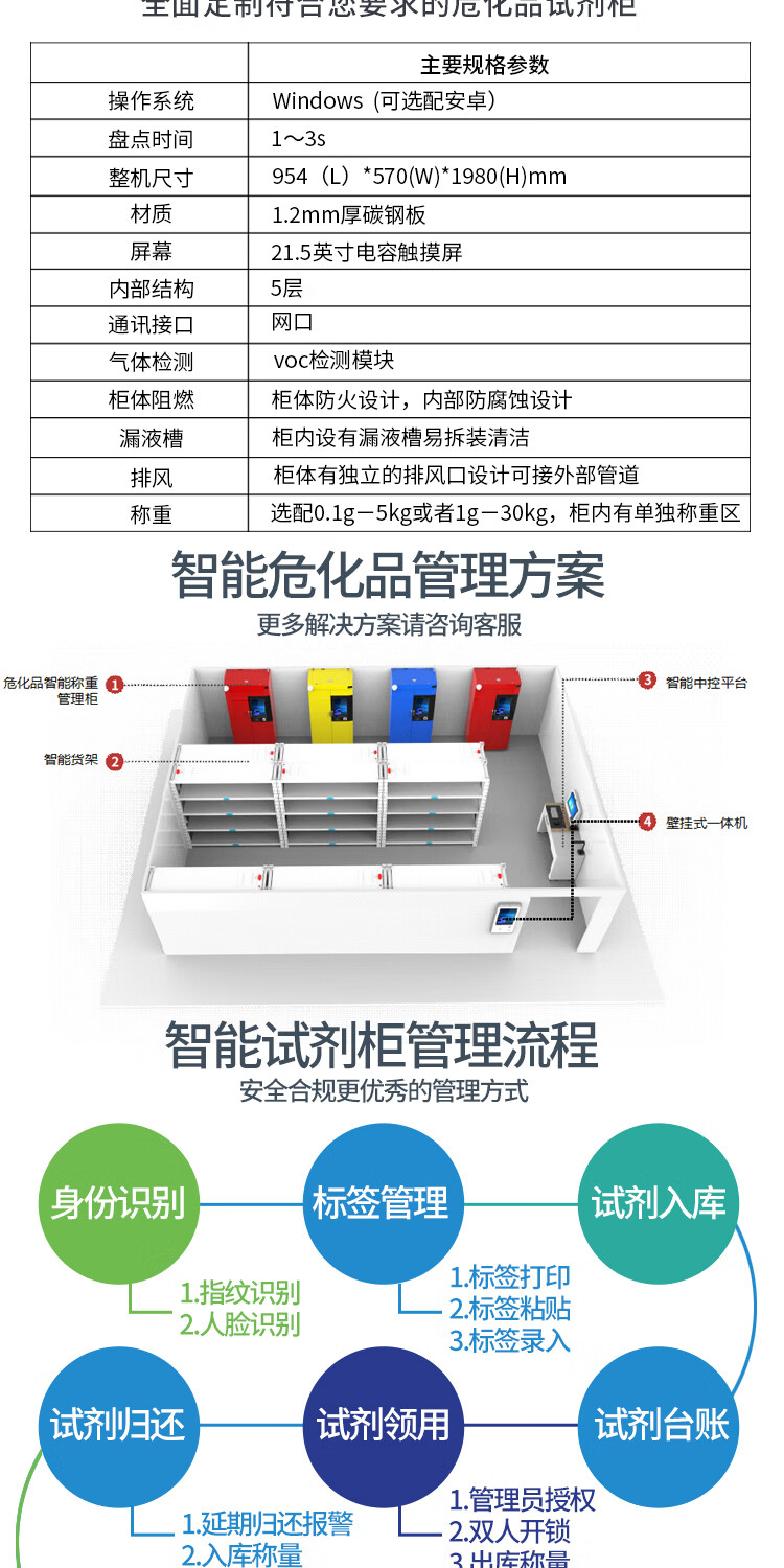 Cykeo Pharmaceutical Storage Intelligent Reagent Cabinet RFID Electronic Tag Identification Drug Weighing Management Cabinet Sensor Data Synchronization Fire and Explosion-proof Cabinet RFID Weighing Reagent Cabinet