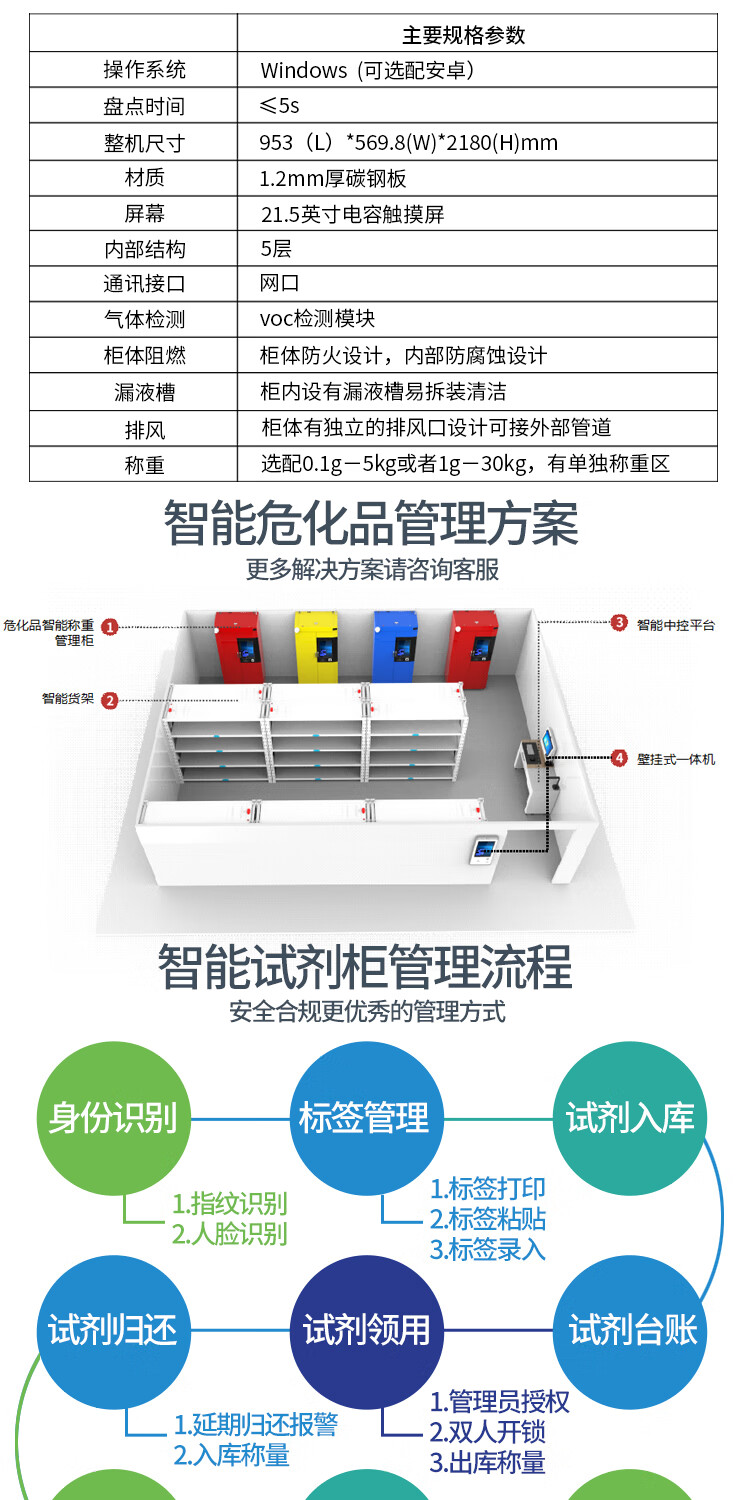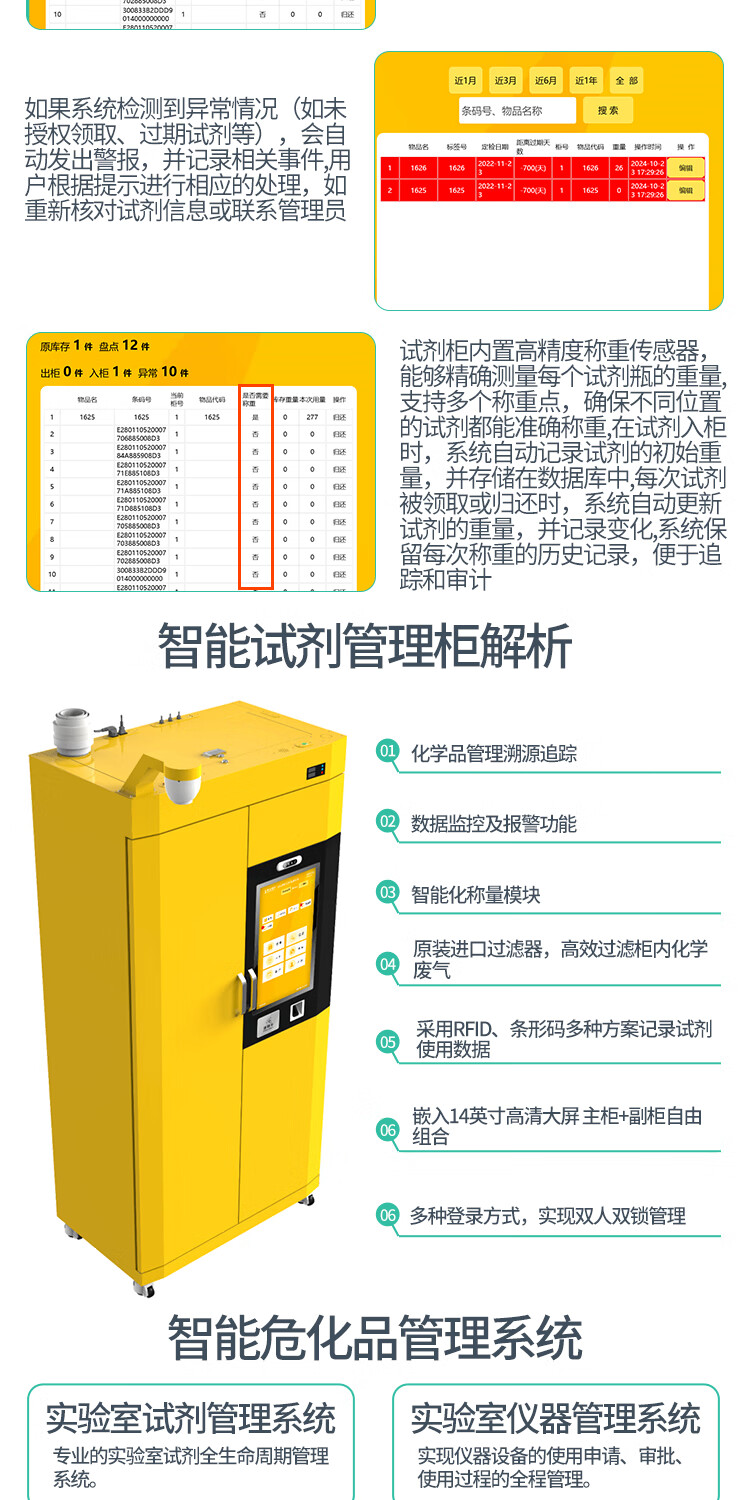 Cykeo Scientific Research Sample Management Cabinet RFID Intelligent Weighing Reagent Cabinet High-Precision Temperature and Humidity Recorder Hazardous Chemical Positioning System Anti-Volatilization RFID Weighing Reagent Cabinet