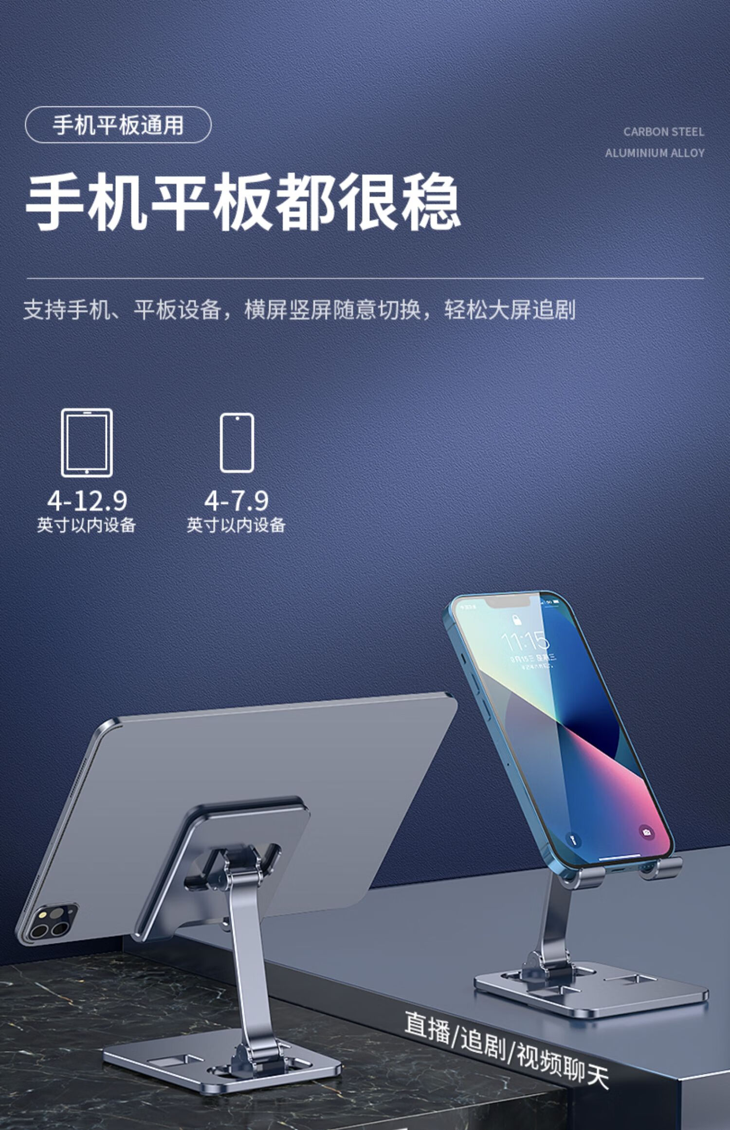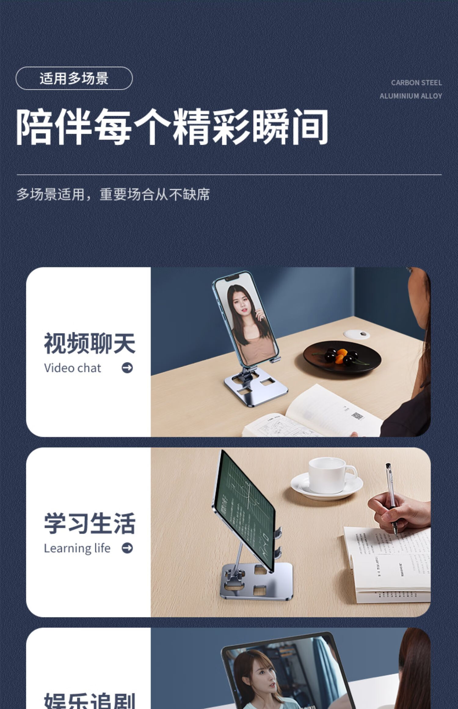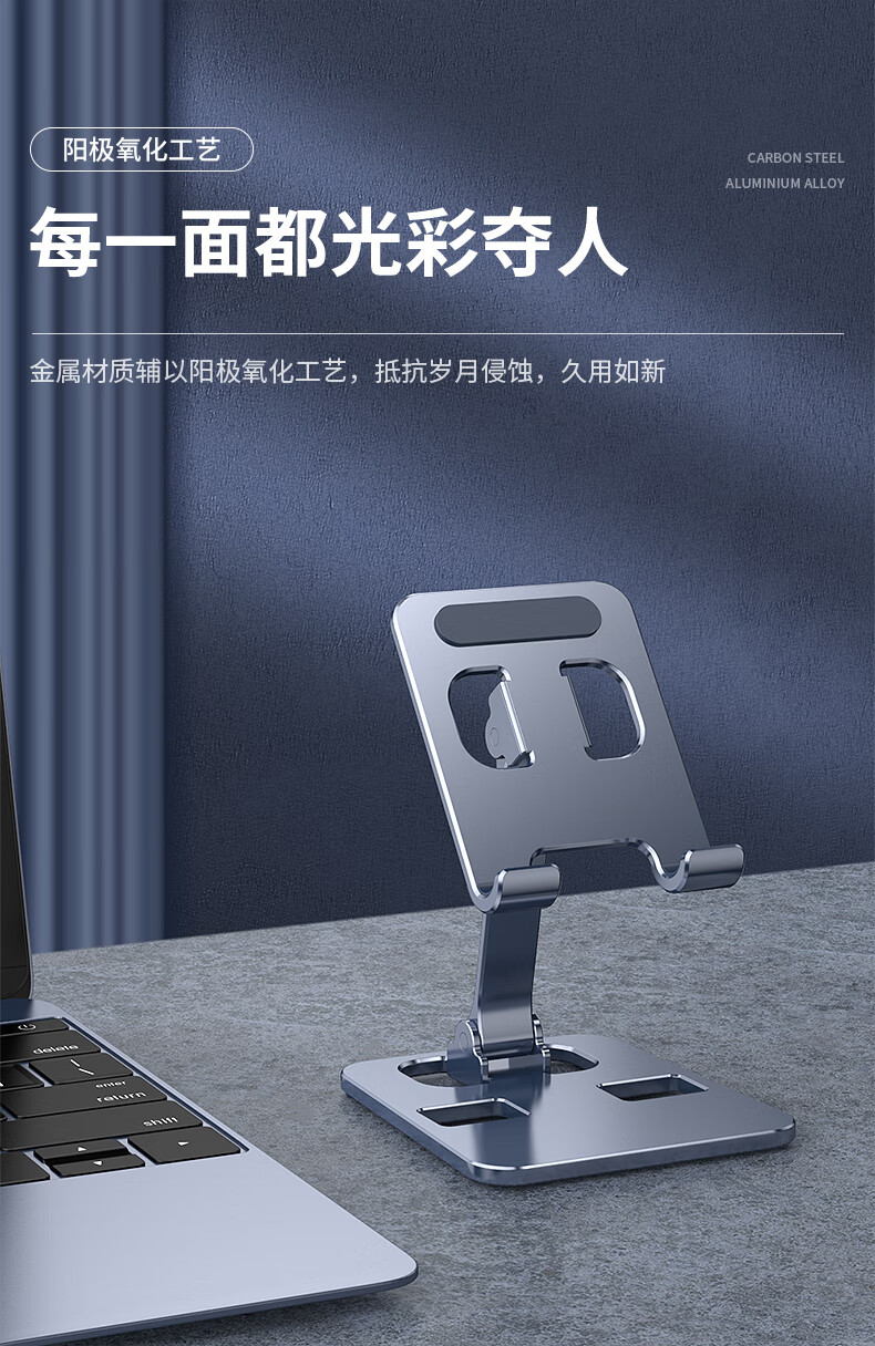 Juwen Heavy Industry All-Metal Mobile Phone Stand Dual-Axis Desktop Foldable Rotating Lift Support Stand Portable Live Broadcast Online Class Drama Suitable for Apple Tablet Huawei Xiaomi Silver