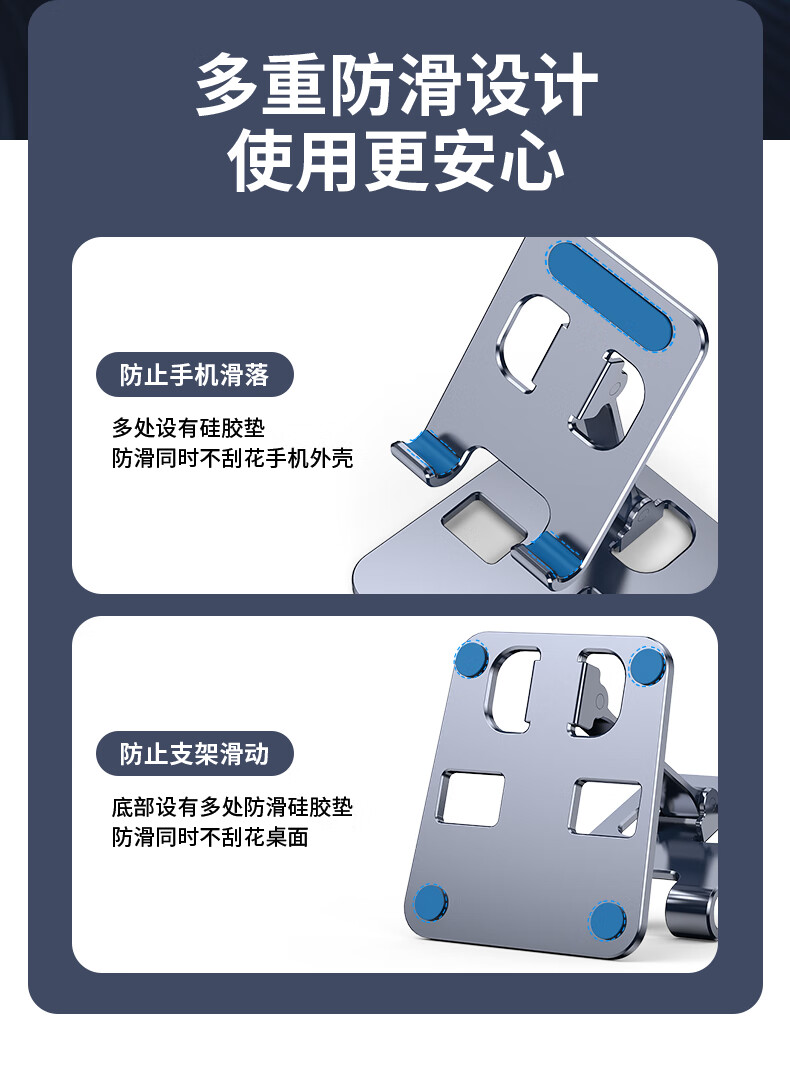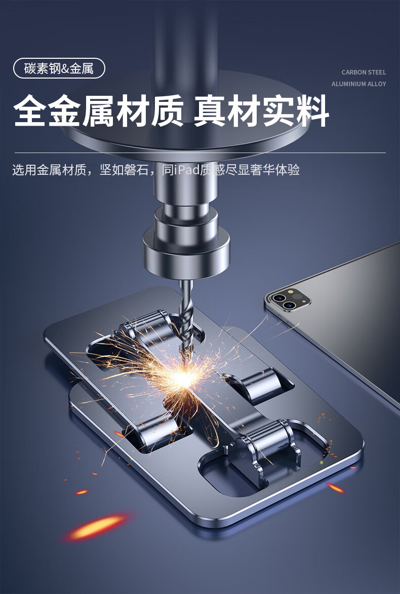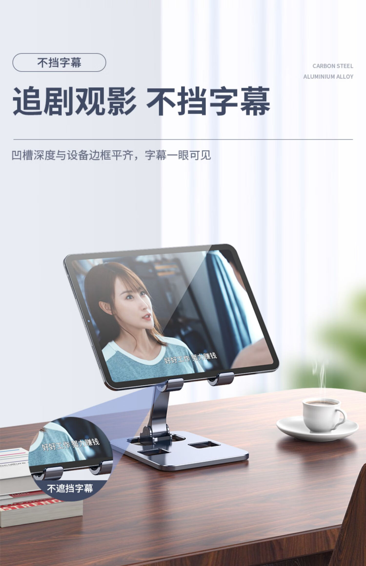 Juwen Heavy Industry All-Metal Mobile Phone Stand Dual-Axis Desktop Foldable Rotating Lift Support Stand Portable Live Broadcast Online Class Drama Suitable for Apple Tablet Huawei Xiaomi Silver
