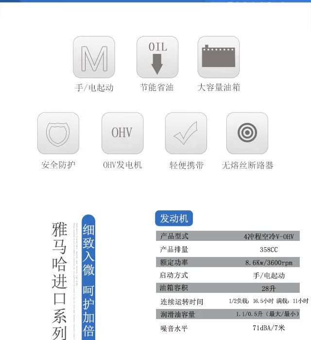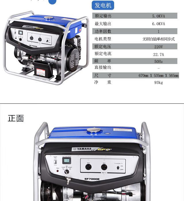 YAMAHA gasoline fuel generator EF7000E, household four-stroke, rated 5000W engine range extender Yamaha gasoline generator EF7000E, 5 kilowatts