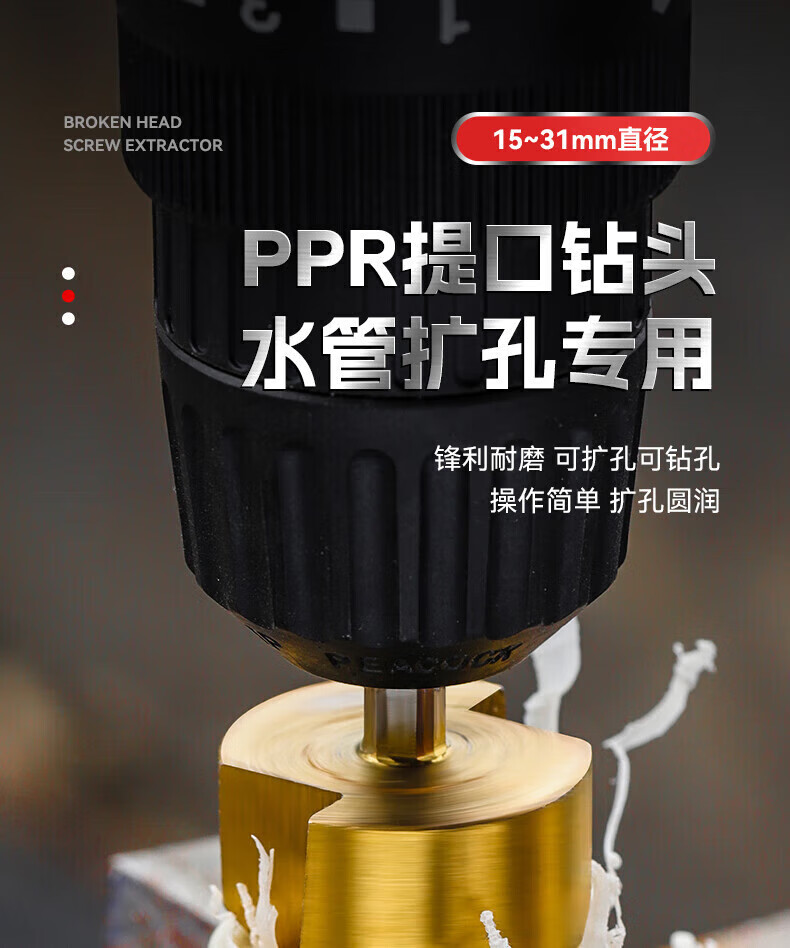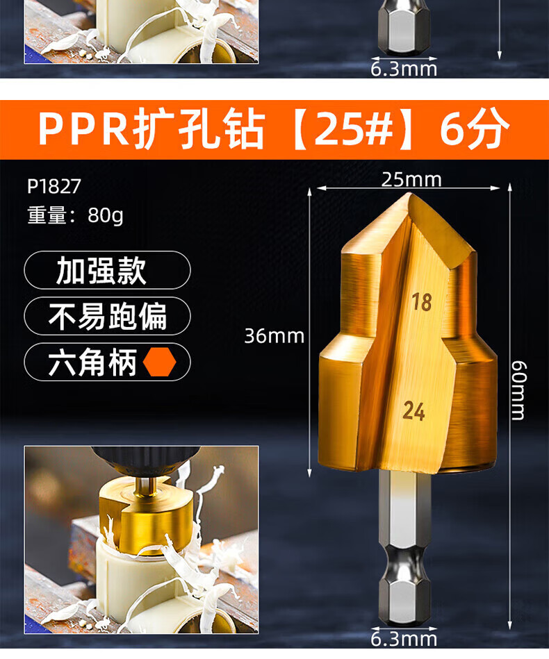 Junpo hexagonal handle PPR lift drill bit water pipe reamer water and electricity maintenance leak repair drill bit four-six-point water pipe punch Hexagonal handle PPR reamer drill 3-piece set 20/25/32