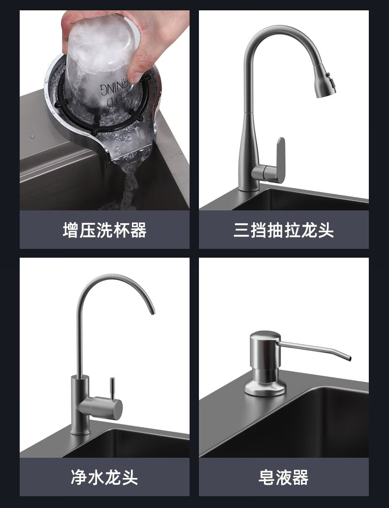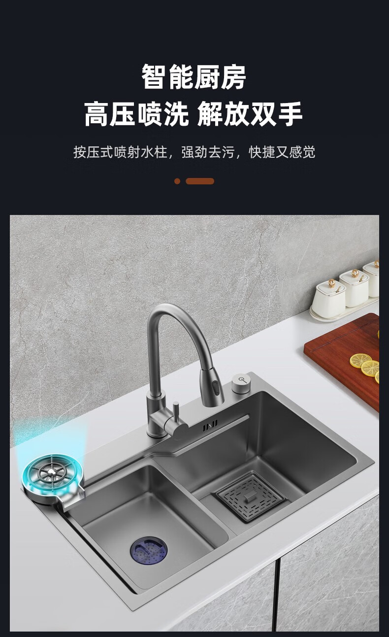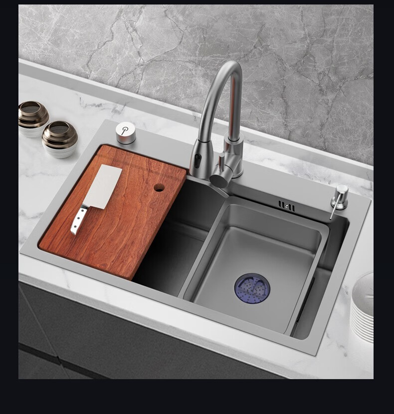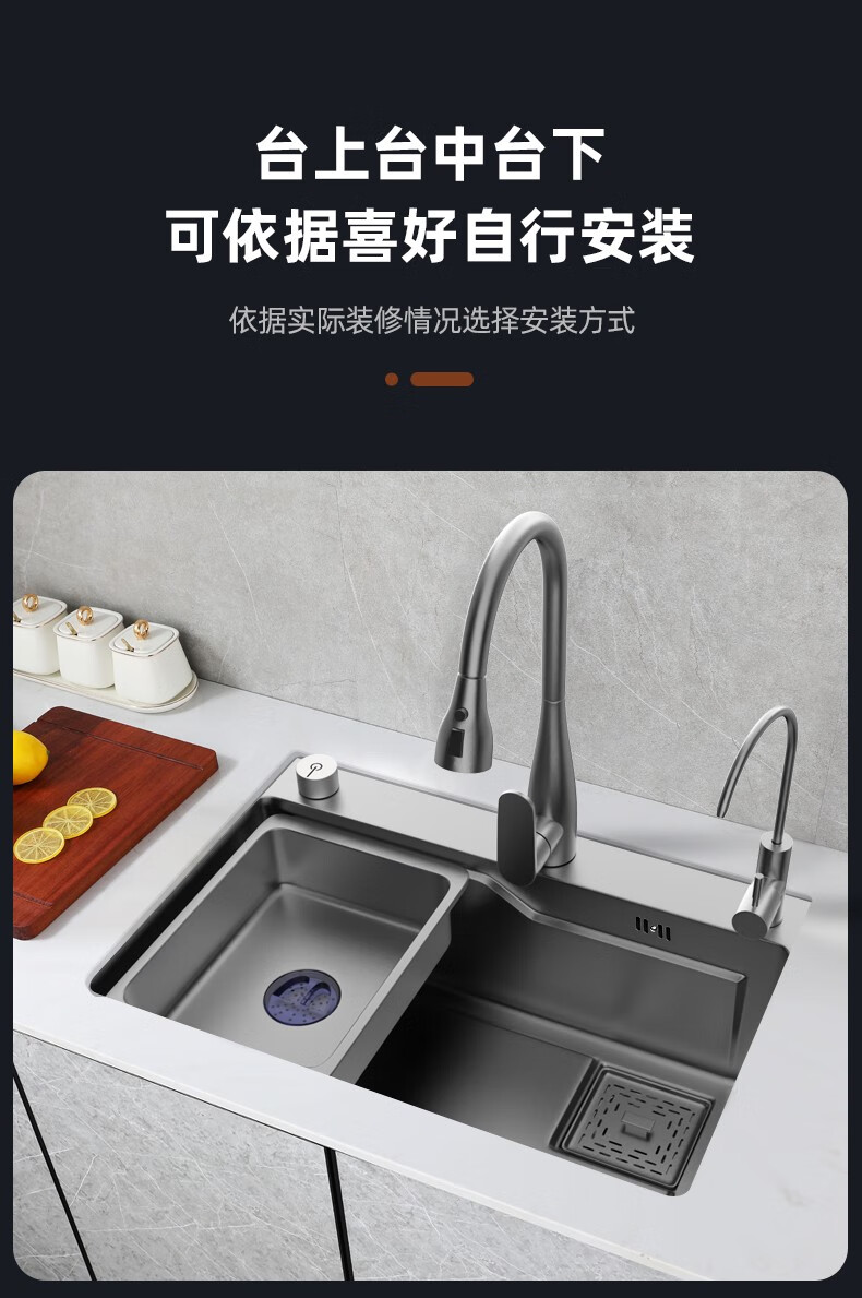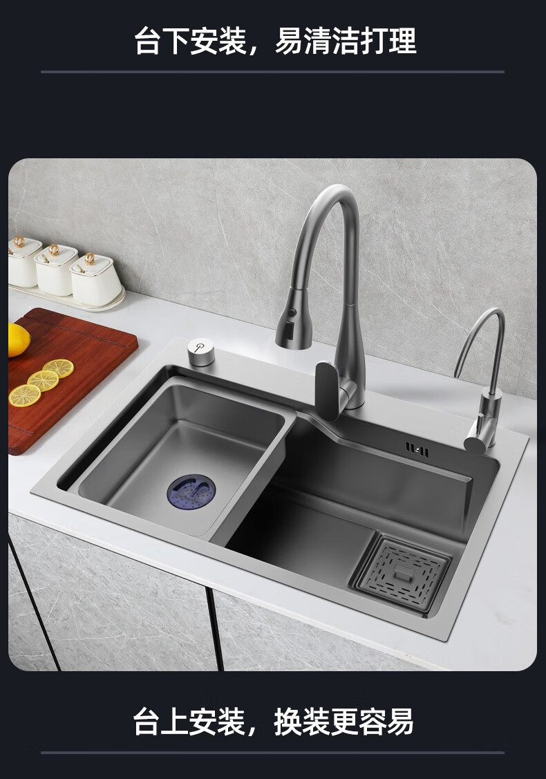 JOMOO 2025 New Gun Gray SUS304 Stainless Steel Nano Kitchen Sink Hand-Thickened Large Single Slot Waterfall for Vegetable Washing Gun Gray 60*45 Upgraded Three-speed Package + Purified Water/