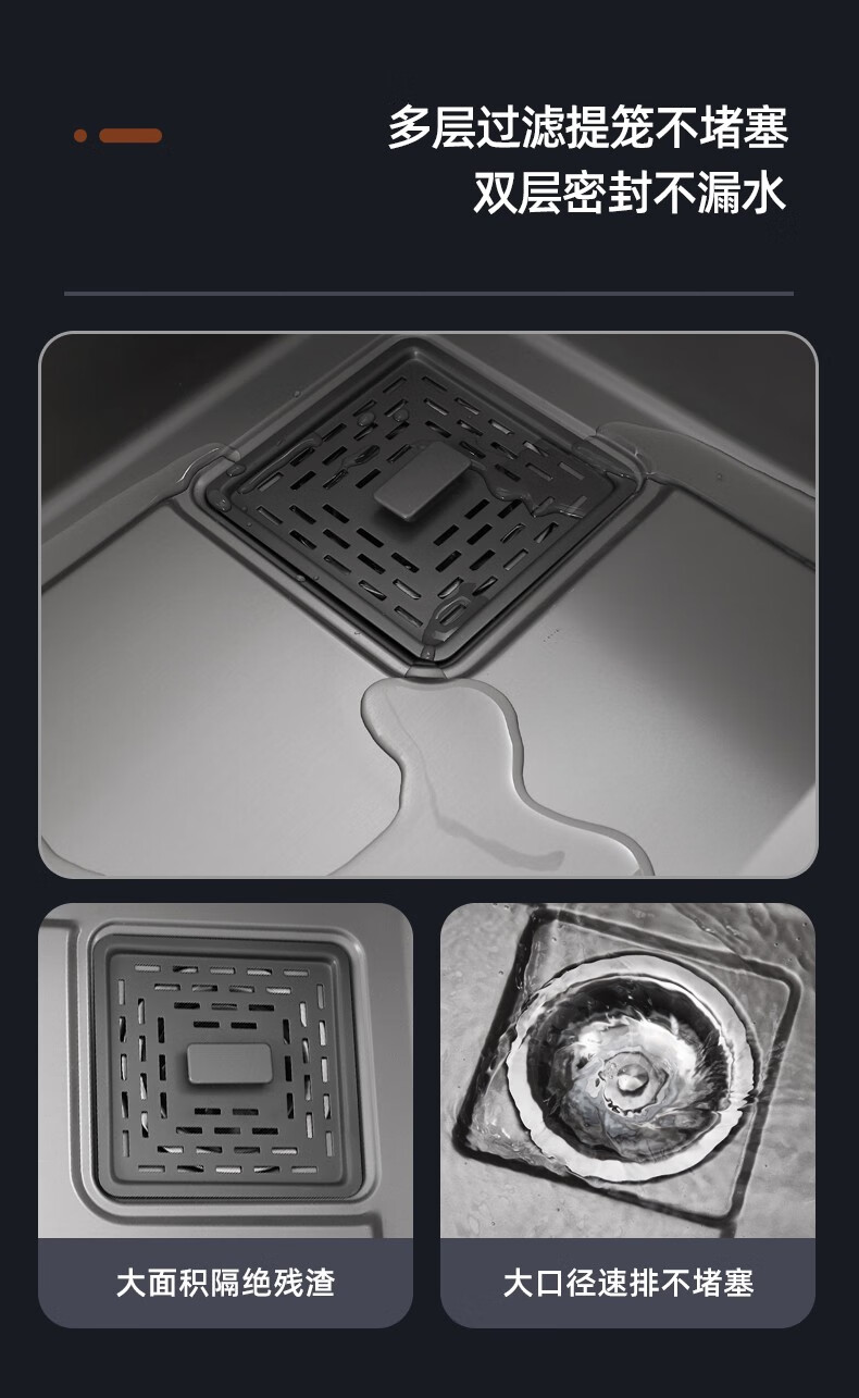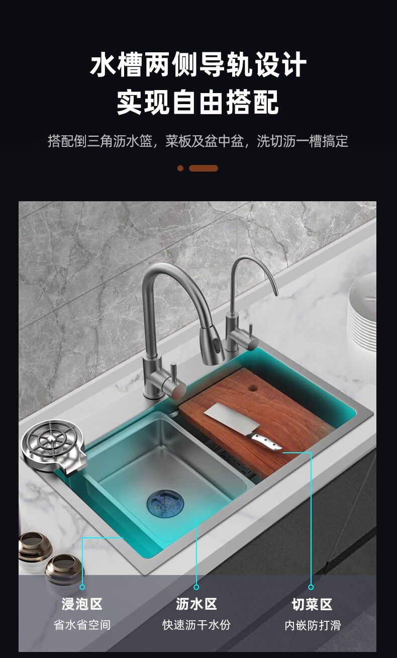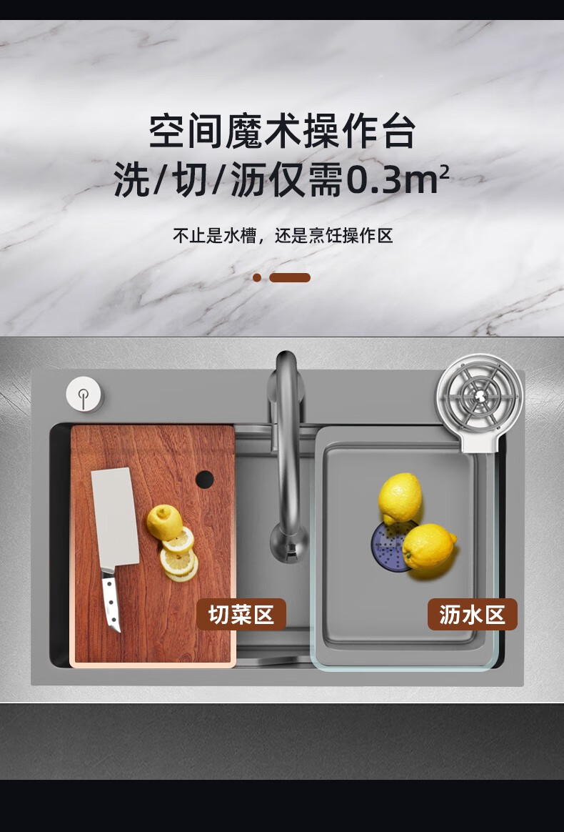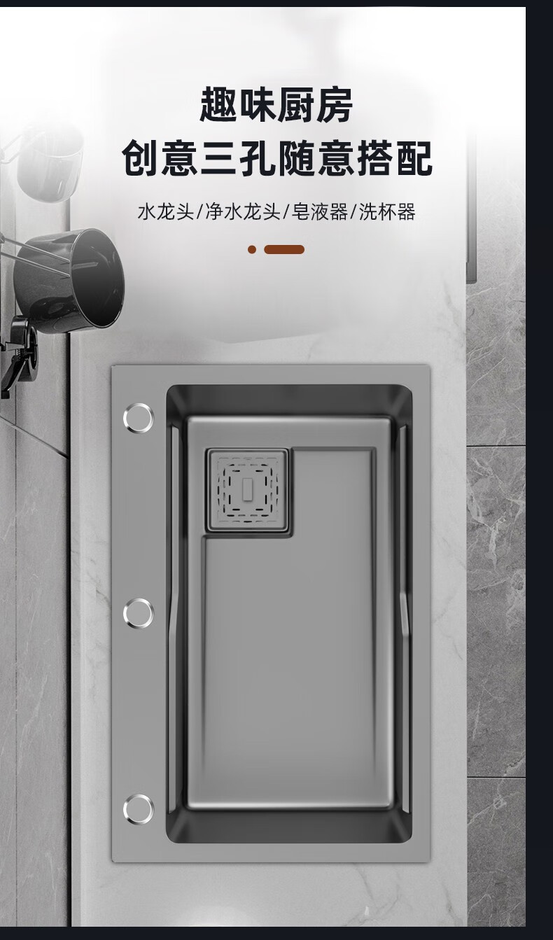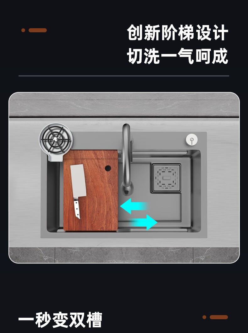 JOMOO 2025 New Gun Gray SUS304 Stainless Steel Nano Kitchen Sink Hand-Thickened Large Single Slot Waterfall for Vegetable Washing Gun Gray 60*45 Upgraded Three-speed Package + Purified Water/