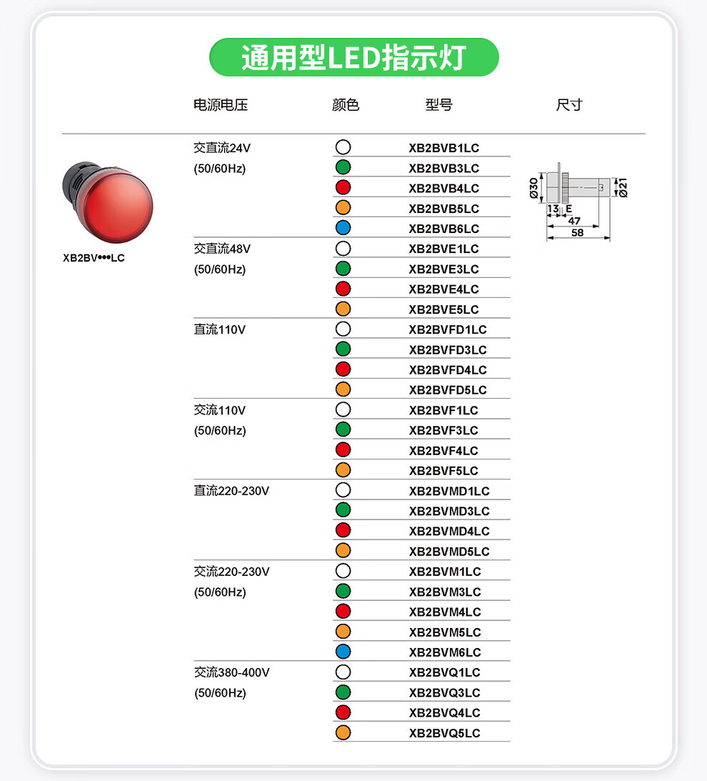 Schneider Electric button indicator XB2 series LED 380VAC red 22mm