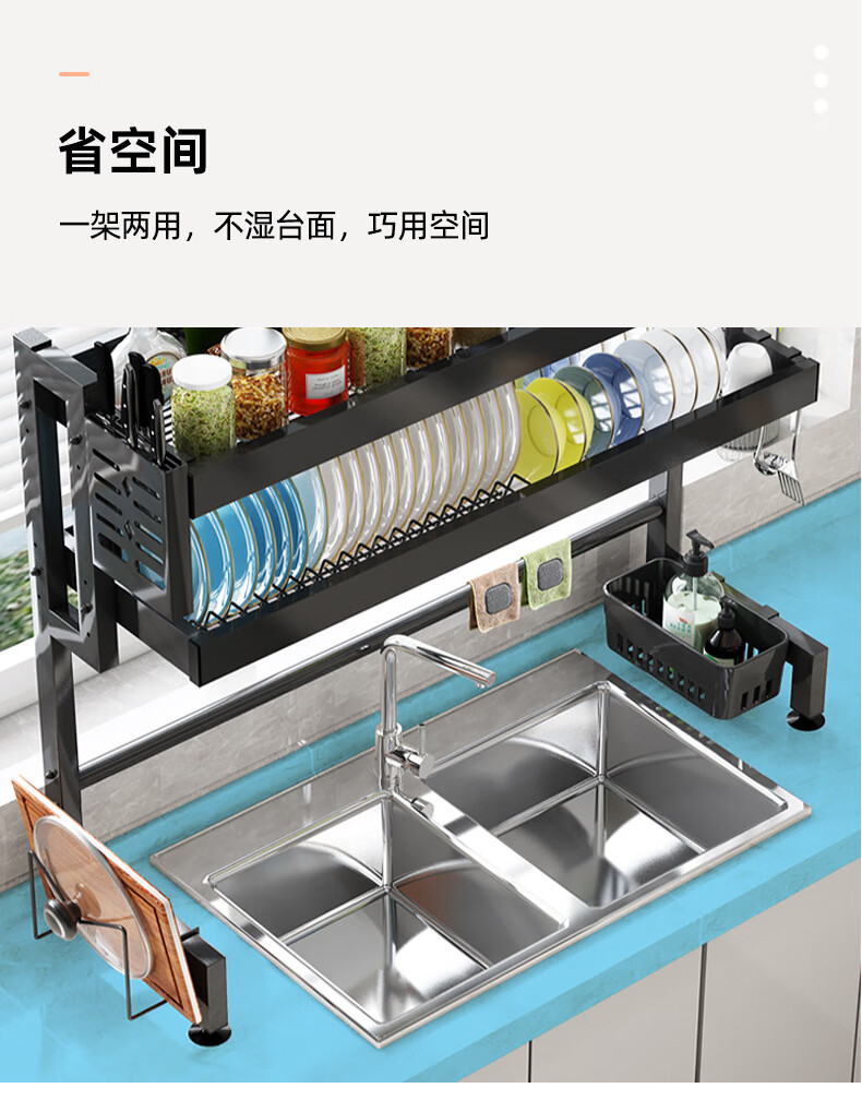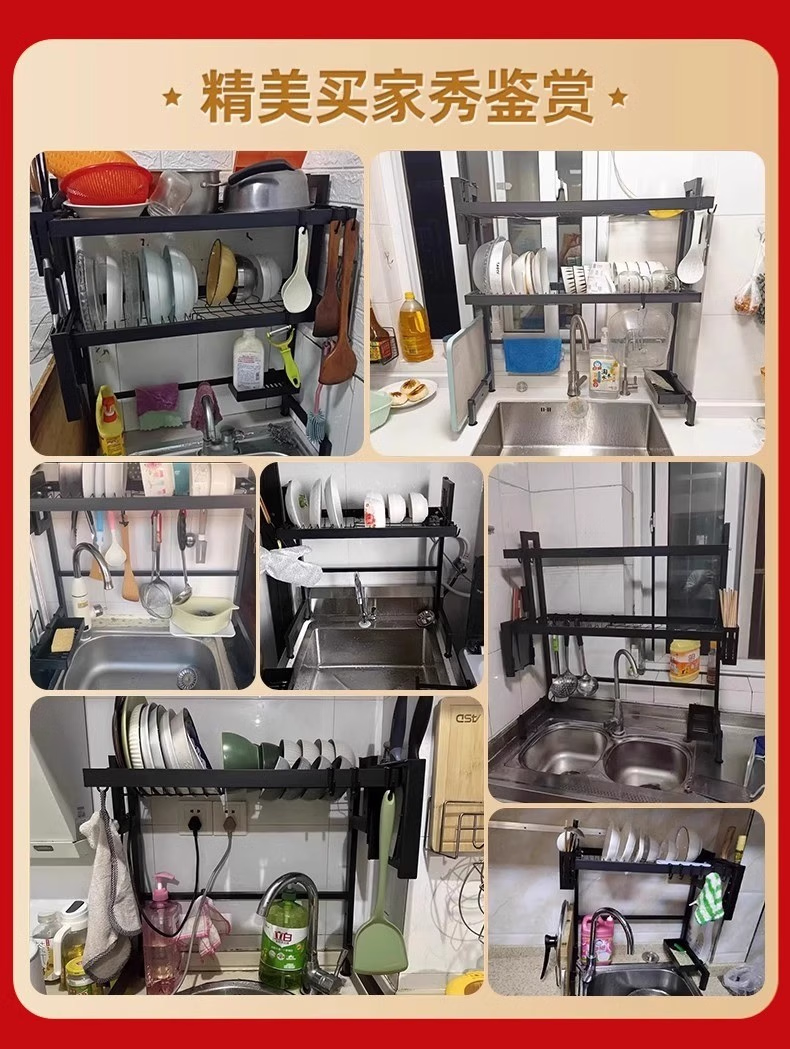 Guoshuo Technology kitchen rack sink drain rack dish rack dish storage rack sink dishwashing storage rack extra thick rust-proof style-85 double layer eight-piece set upgraded version with eight-piece set