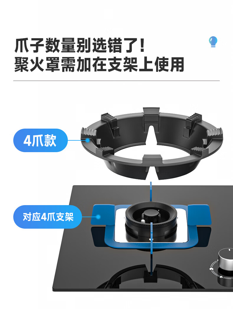 Gas stove windproof cover, fire-concentrating, energy-saving cover ring, household cast iron non-slip universal gas liquefied gas stove bracket accessories 4-claw universal fire-concentrating/windproof/8 teeth more anti-slip