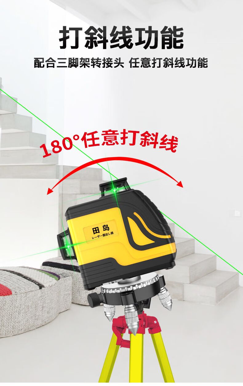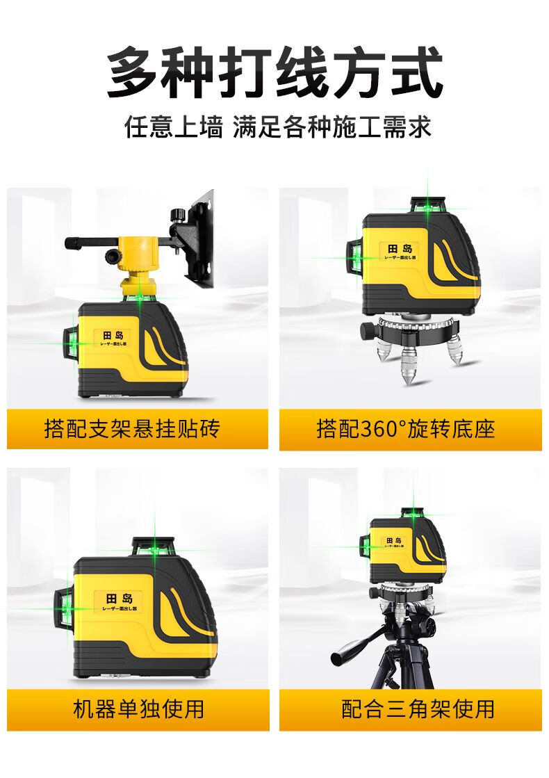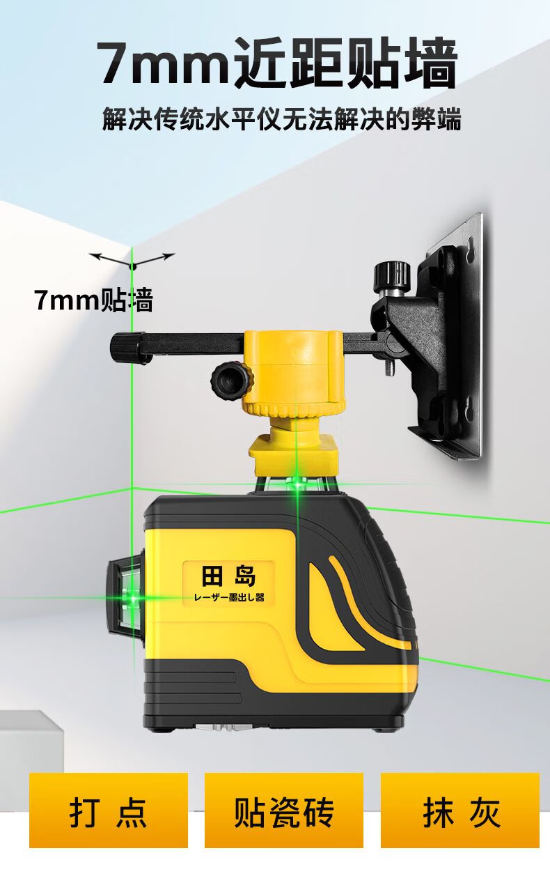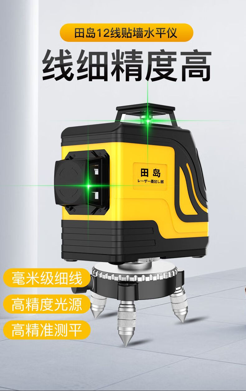 Tajima 12-line green light level meter, high-precision strong light thin line 8-line laser wall attaching instrument, automatic line marking, super bright 12 lines + wall bracket