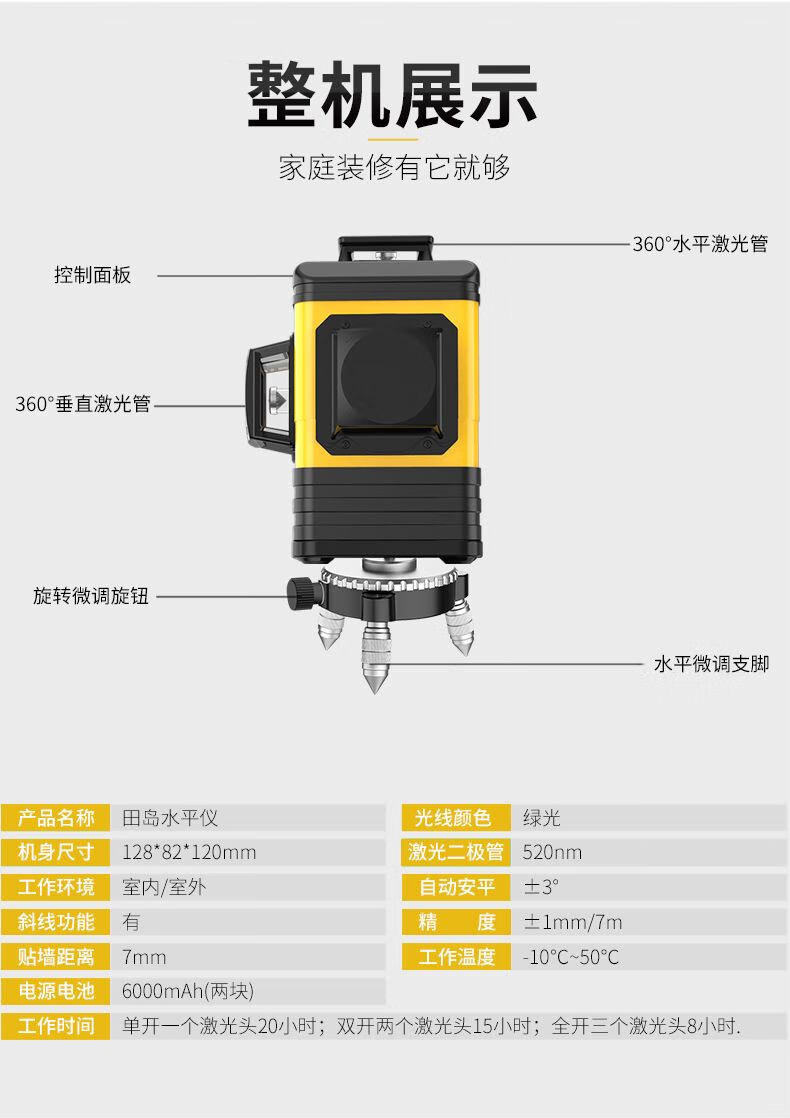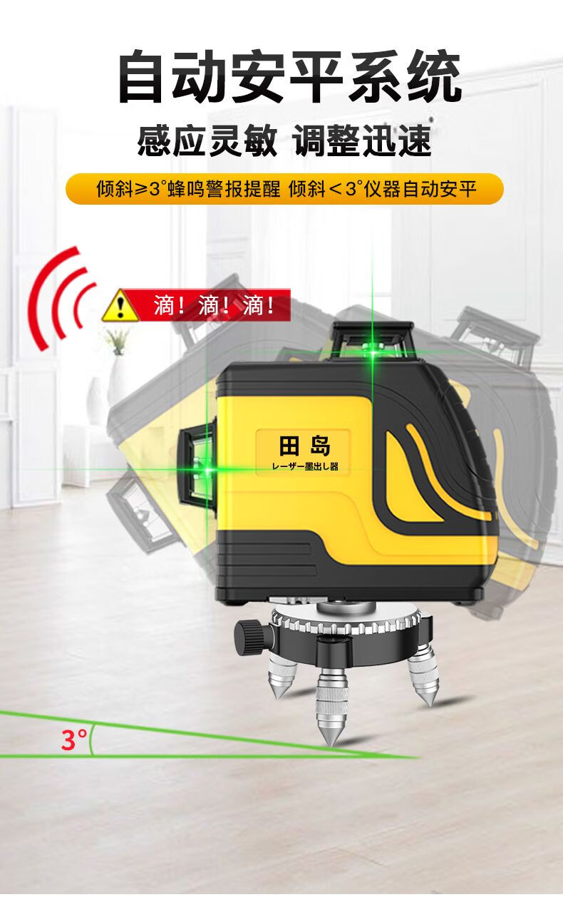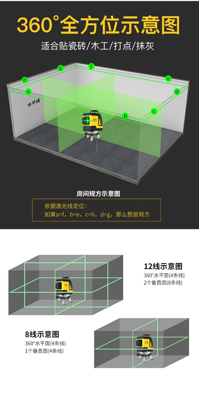 Tajima 12-line green light level meter, high-precision strong light thin line 8-line laser wall attaching instrument, automatic line marking, super bright 12 lines + wall bracket