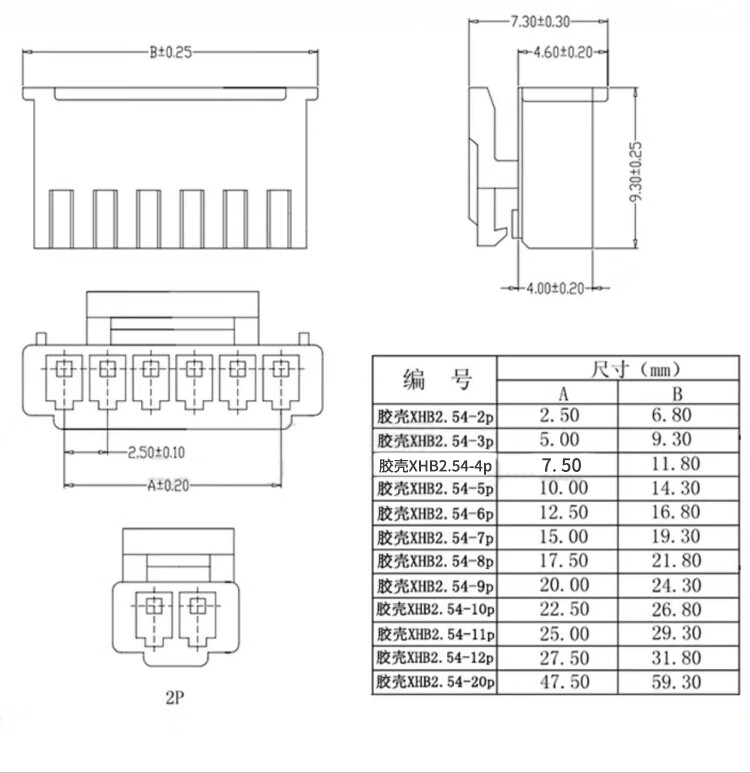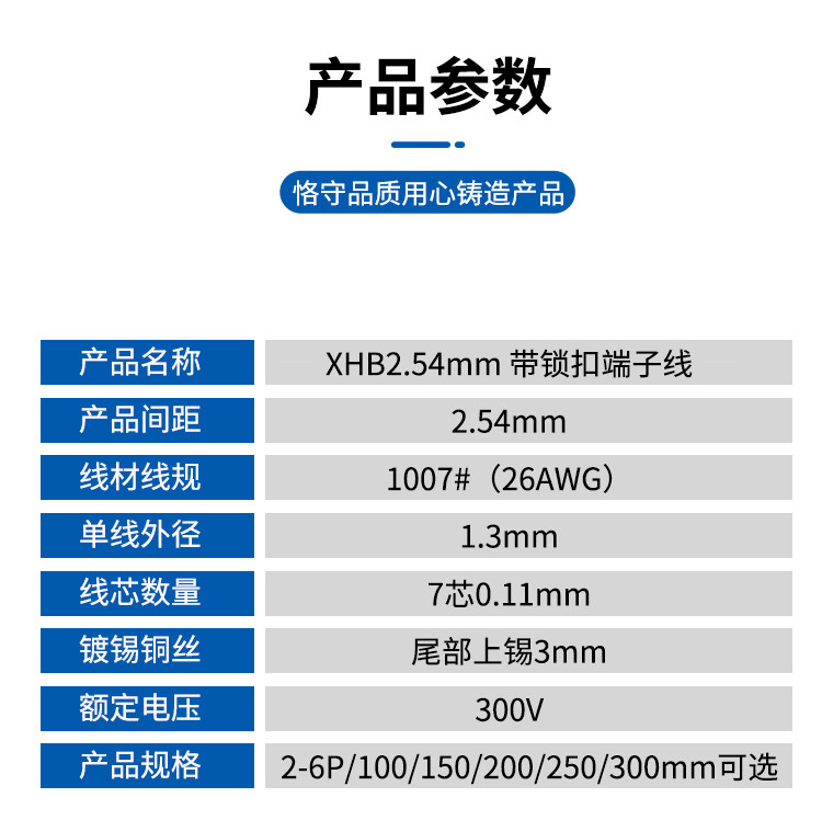 XHB2.54mm locking terminal cable, pitch 2.54mm, color plug electronic connection cable, single-ended and double-ended, 150mm single-ended (tin-plated tail), 2P male (5 pieces), no specification