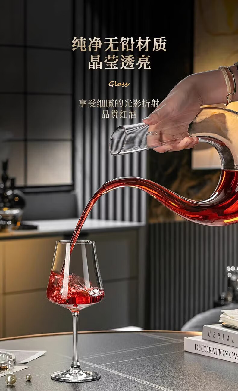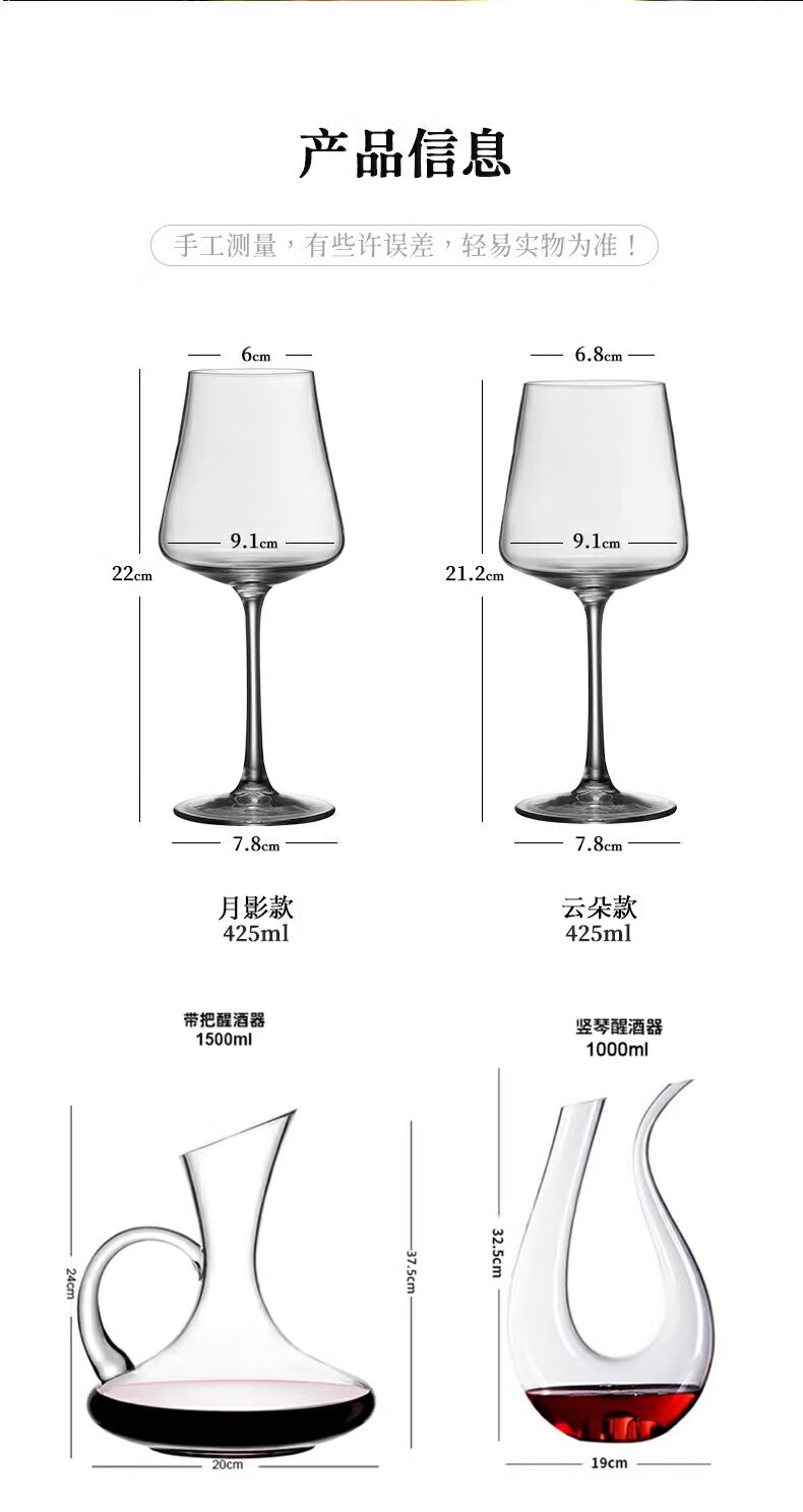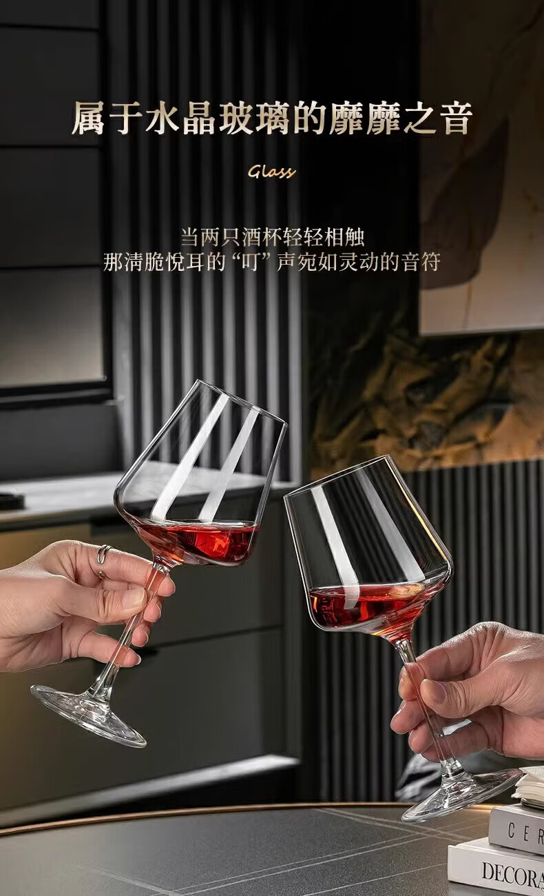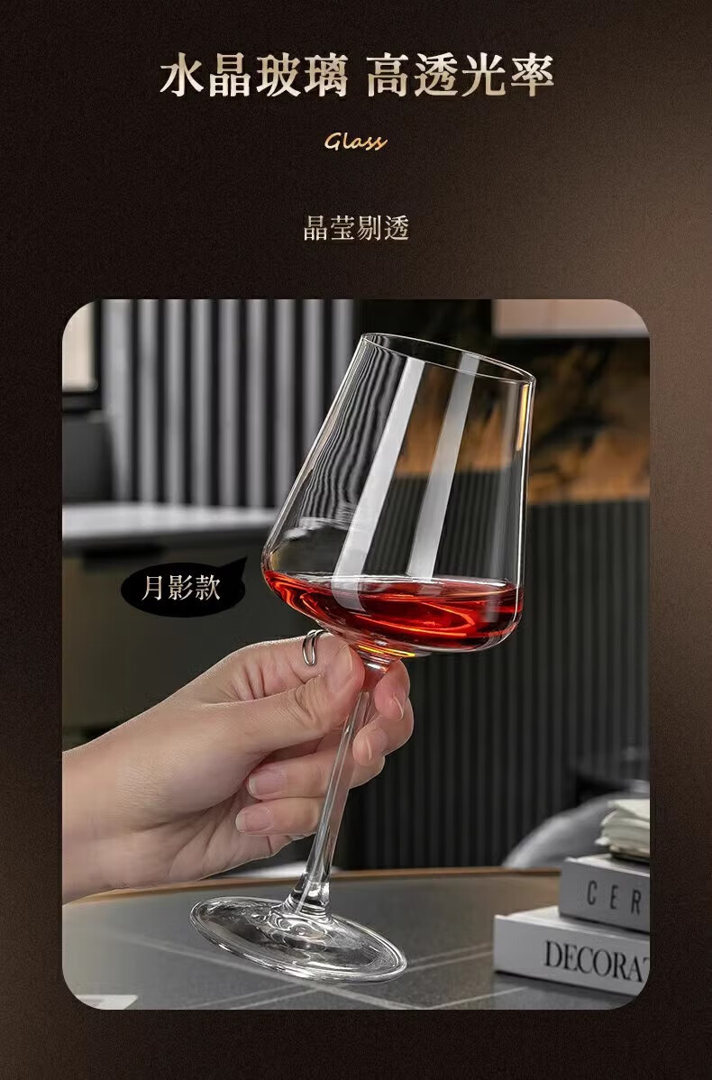 MARTIGUES red wine glass crystal light luxury home high-end new decanter set European wine stems moon shadow style 425ml 6 pieces