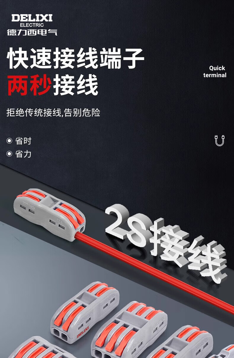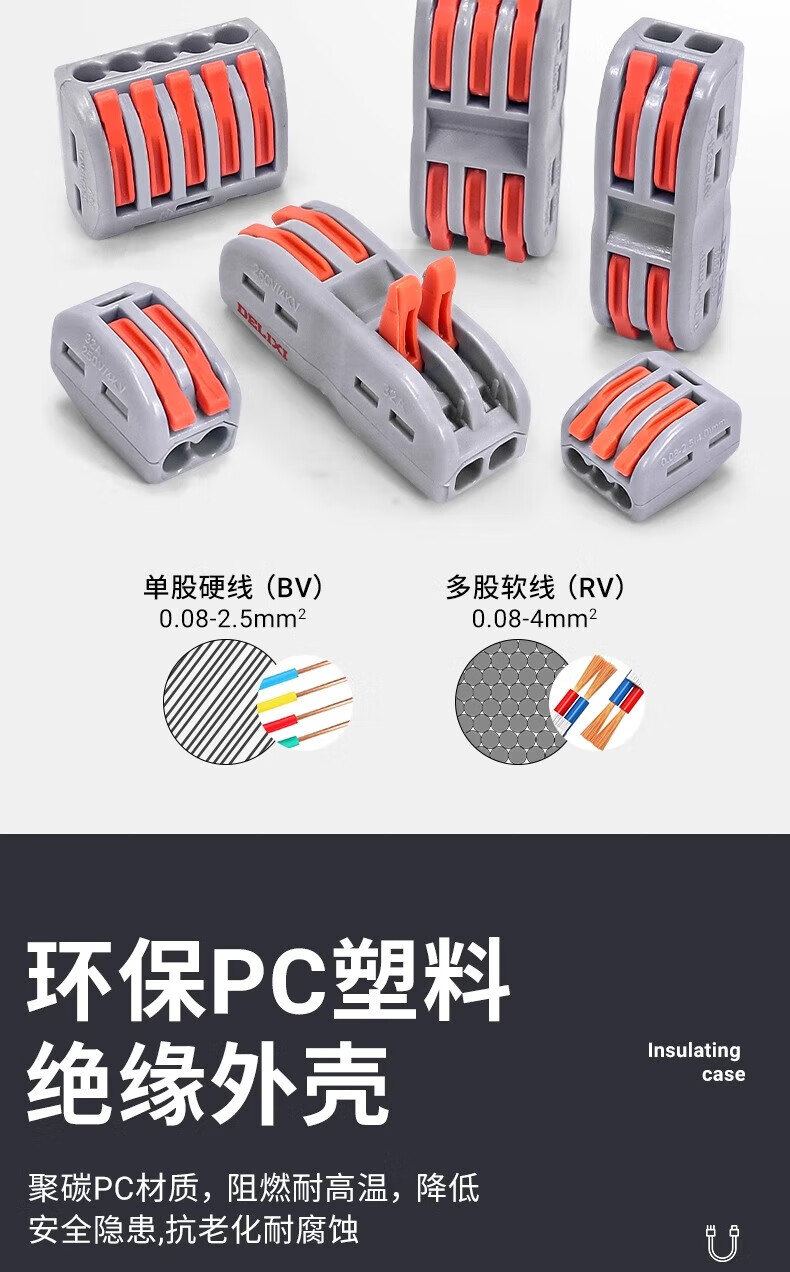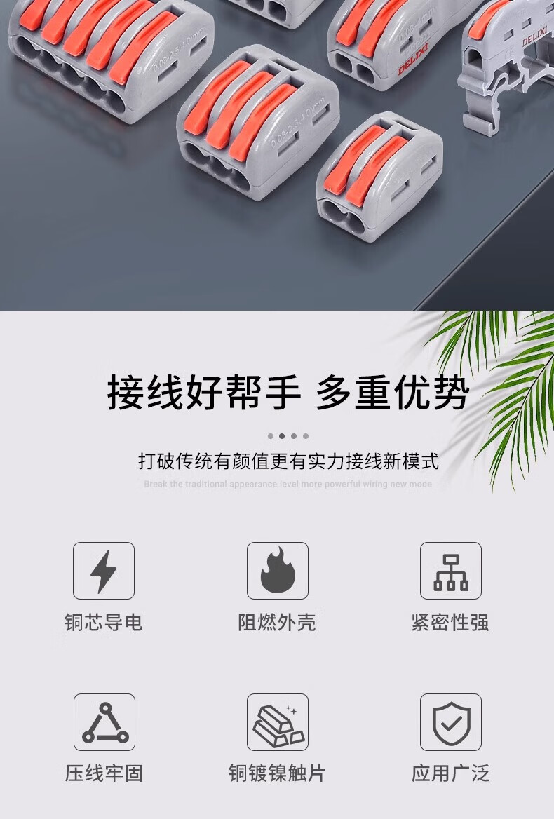 Delixi Electrical Terminal Block Terminal Block Connector Pressing Wire Wiring Two In Two Out Connector PCT-222 (10 pieces)