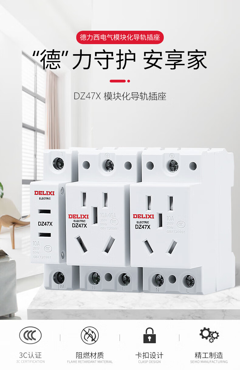 Delixi electrical guide rail socket distribution box socket modular socket three-phase four pole 25A DZ47X425