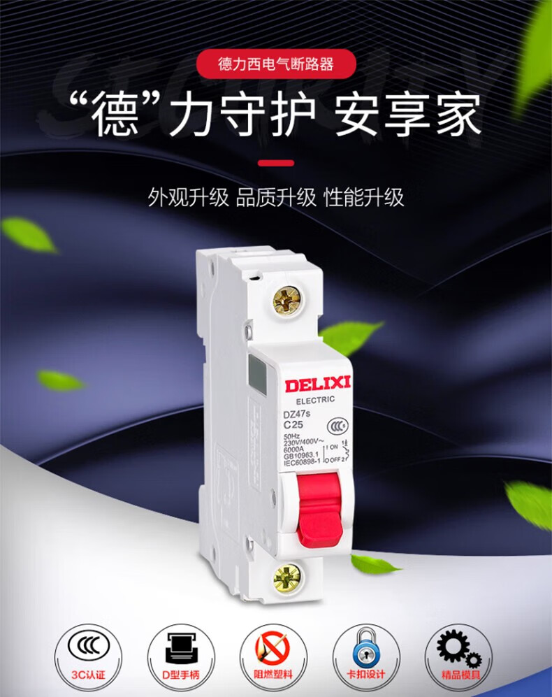 Delixi electrical air switch 3p household industrial 63a single-phase three-phase electric gate switch air circuit breaker DZ47S 63A