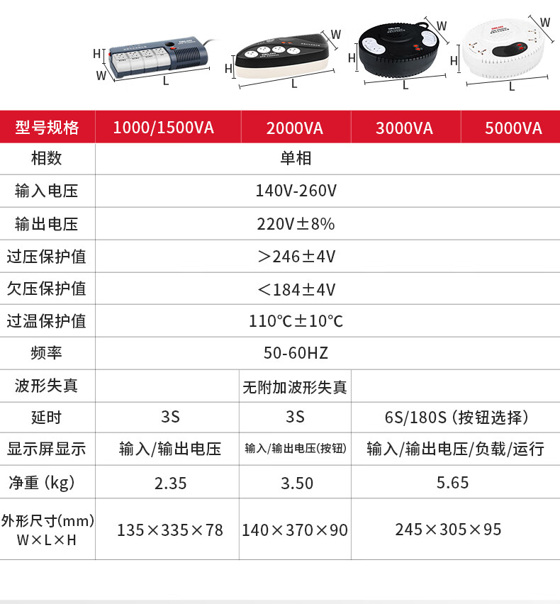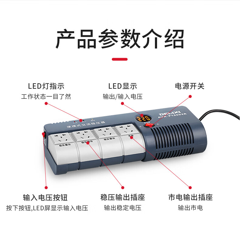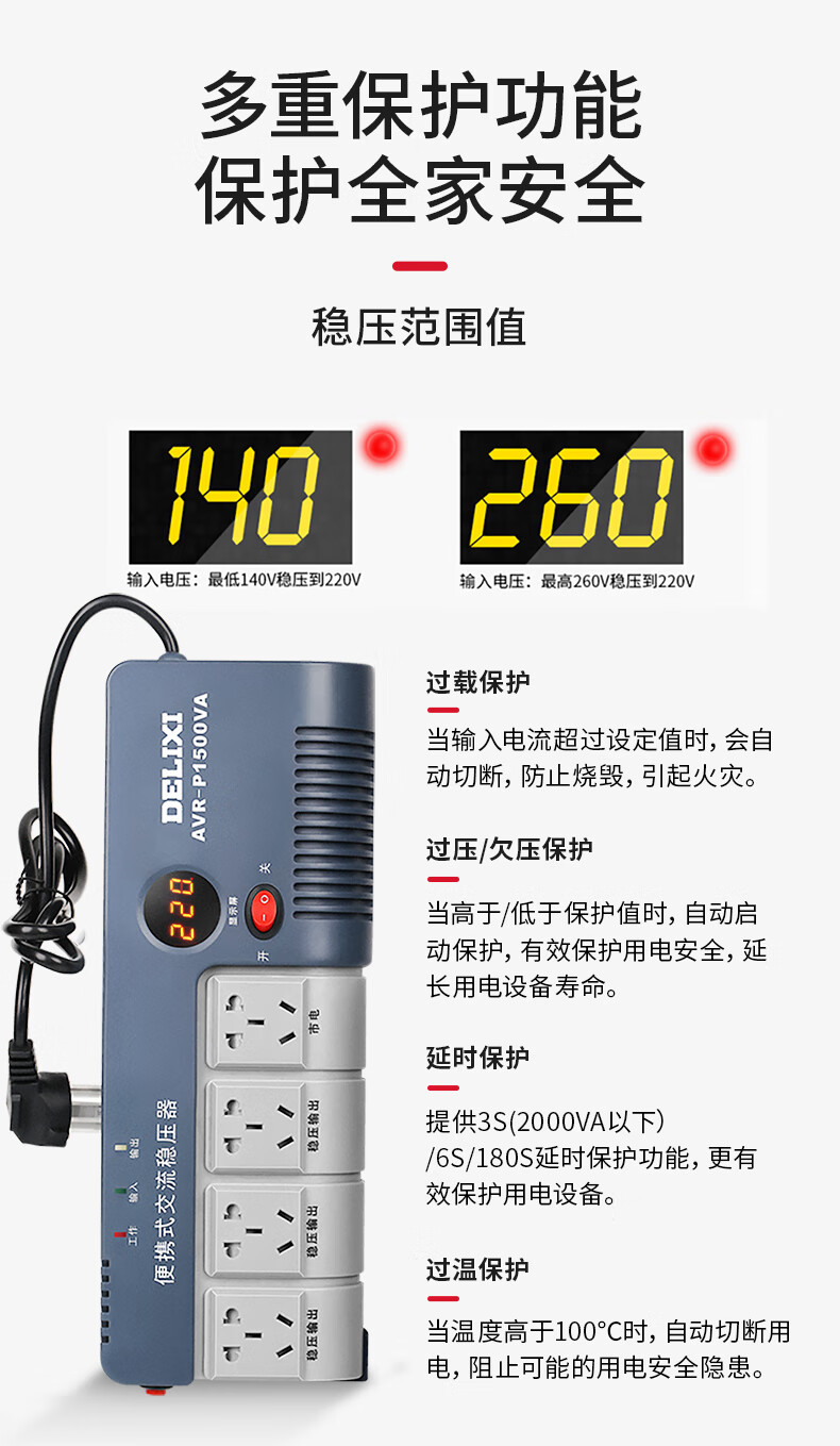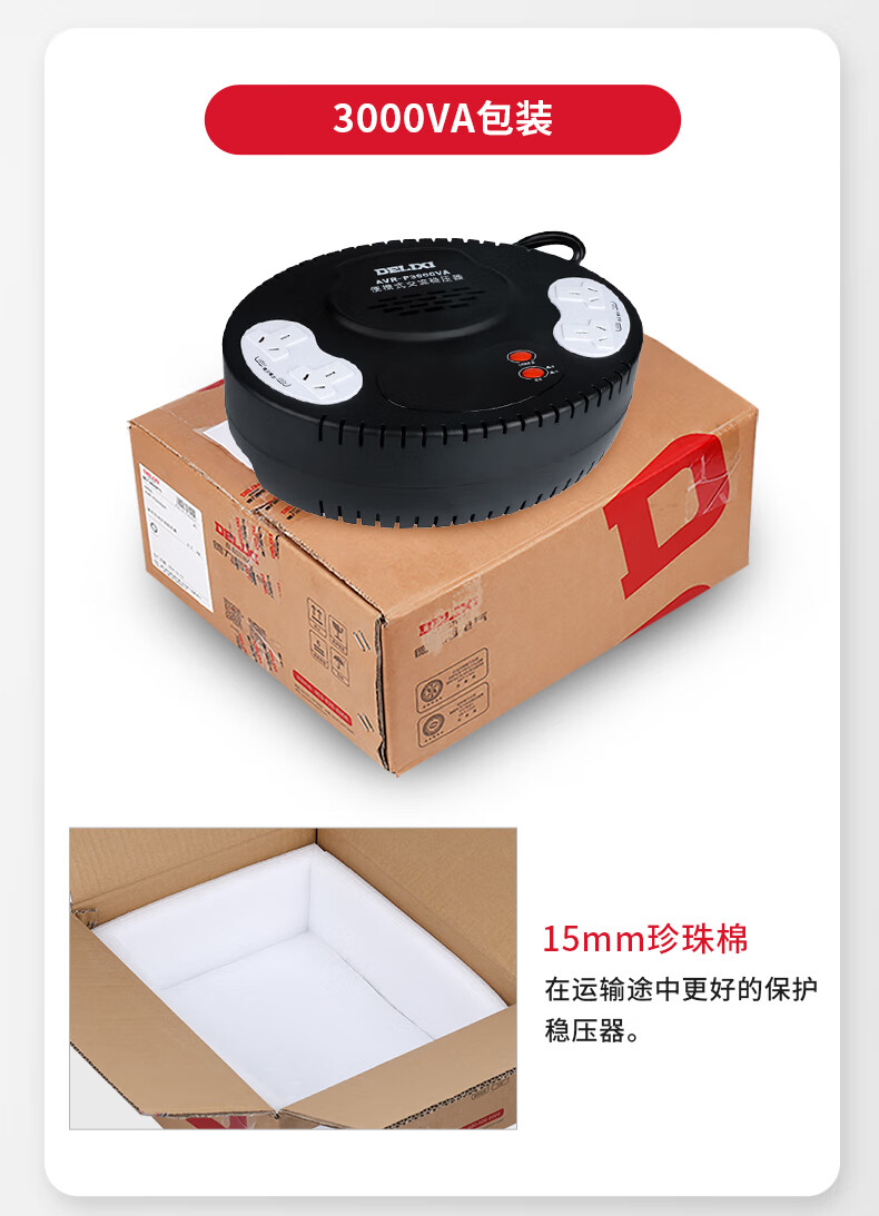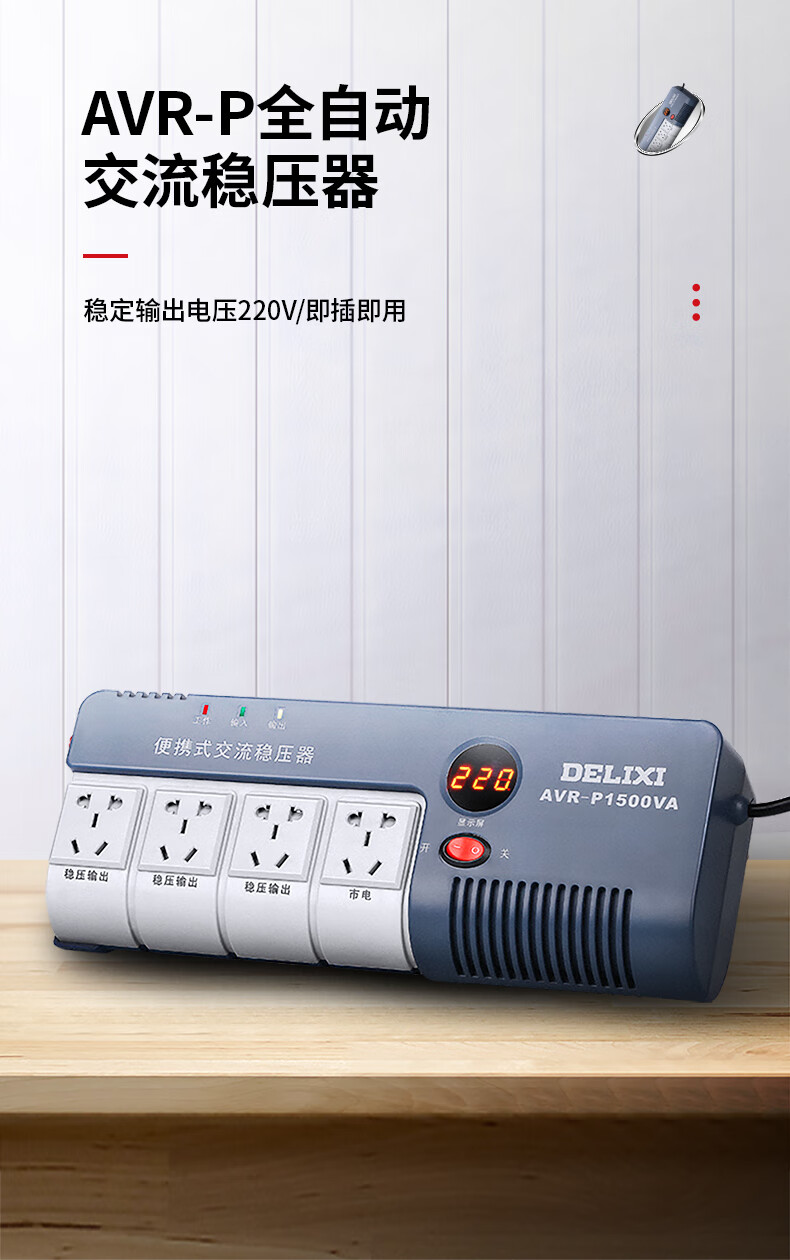 Delixi Electric household voltage stabilizer 220V household small plug-in regulated power supply 3000VA