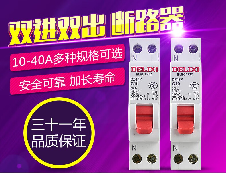 Delixi Electric double in and double out 1p+n household single-phase air circuit breaker air switch 16A