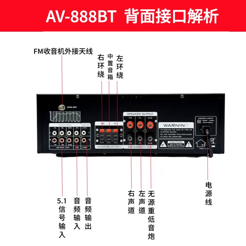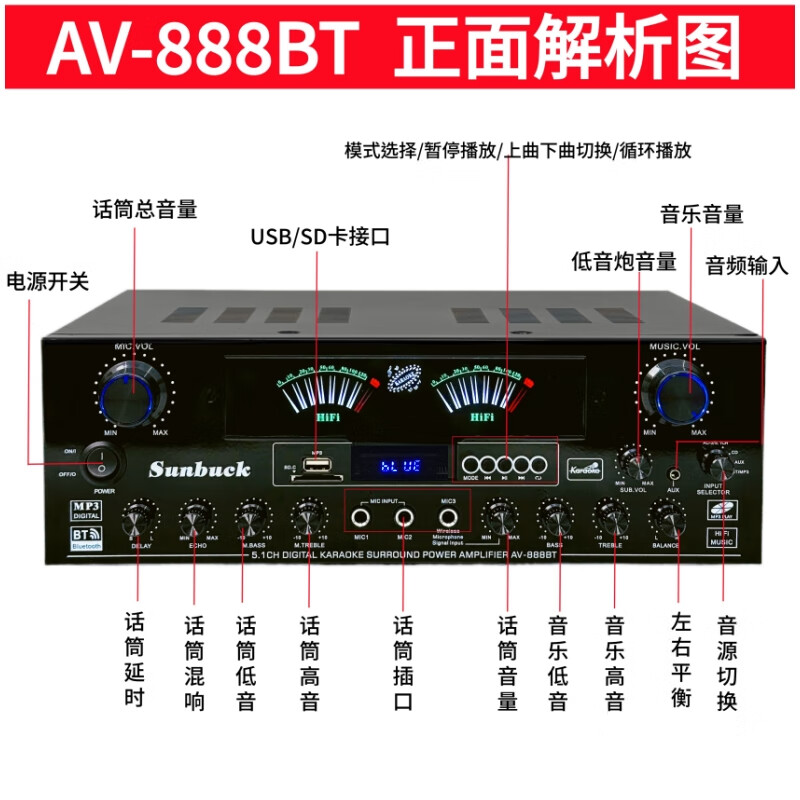 SUNBUCK 5-channel power amplifier home high-power professional karaoke fever heavy bass 7.1 digital coaxial 5.4 Bluetooth Shanyu SV-1200 car dual power supply 2 channels